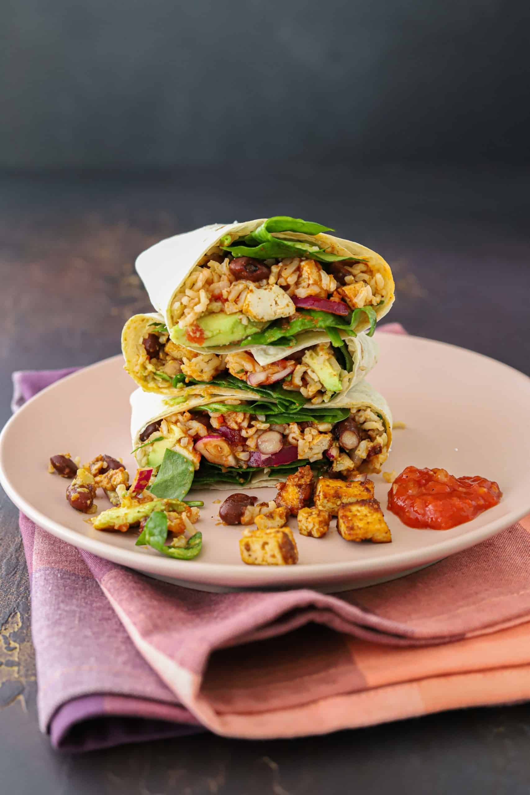 Voor deze burrito’s met tofu hoef je maar heel weinig moeite te doen en het resultaat is zalig! Normaal eet ik mijn burrito’s eigenlijk altijd met gehakt en soms met kip (zoals deze met krokante kip). Maar ik vond het een uitdaging om ook eens een vegetarische variant te maken en mijn keuze viel op tofu. In combinatie met de burrito specerijen pakte dat verrassend goed uit. Onze kinderen waren er ook dol op trouwens, echt een kidsproof gerecht.