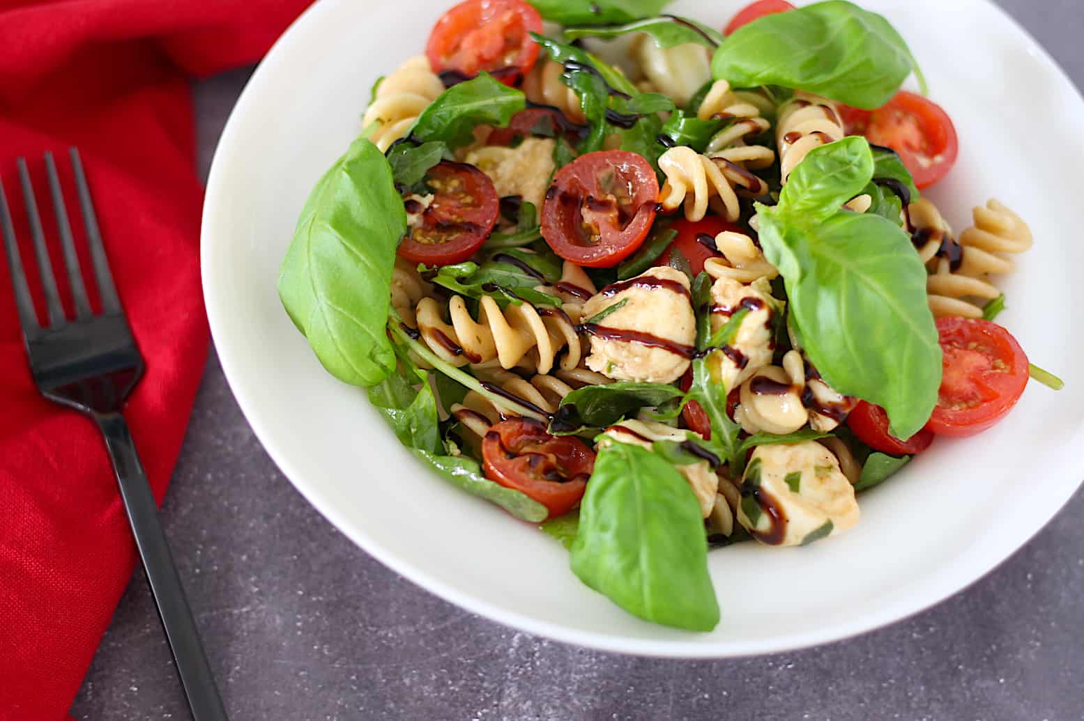 Ik zit in een caprese-fase. Een smaakcombinatie die nooit gaat vervelen en waar je alle kanten mee op kunt. Ik besloot afgelopen week om de tomaten, mozzarella, basilicum en olijfolie te combineren met volkoren fusili en toen was de caprese pastasalade ontstaan. Hartstikke makkelijk om te maken (en voor te bereiden) en geschikt voor het hele gezin. Iedereen heeft ervan gesmuld!