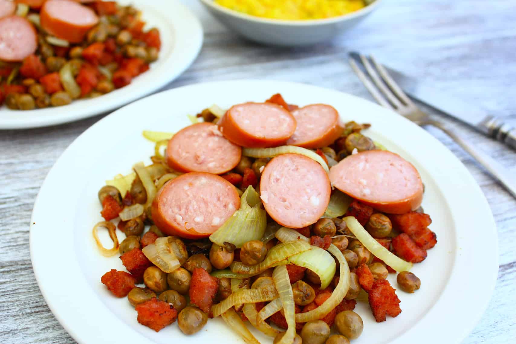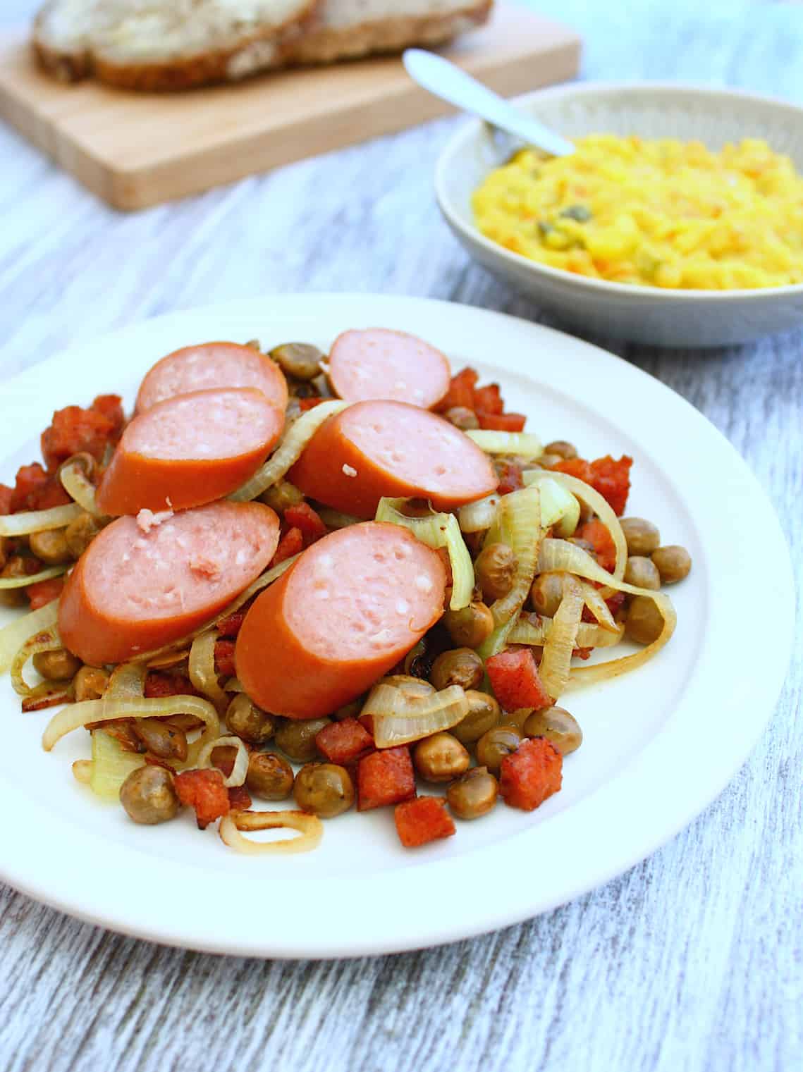 En nu vinden we het, naast heel simpel om te maken, vooral ook erg lekker! Zeker met de verse kapucijners die er op het moment zijn. De schaaltjes op tafel doen denken een aan Indonesische rijsttafel, daarom wordt dit gerecht ook wel de Hollandse rijsttafel genoemd. Zelfs terwijl er geen rijst aan te pas komt.