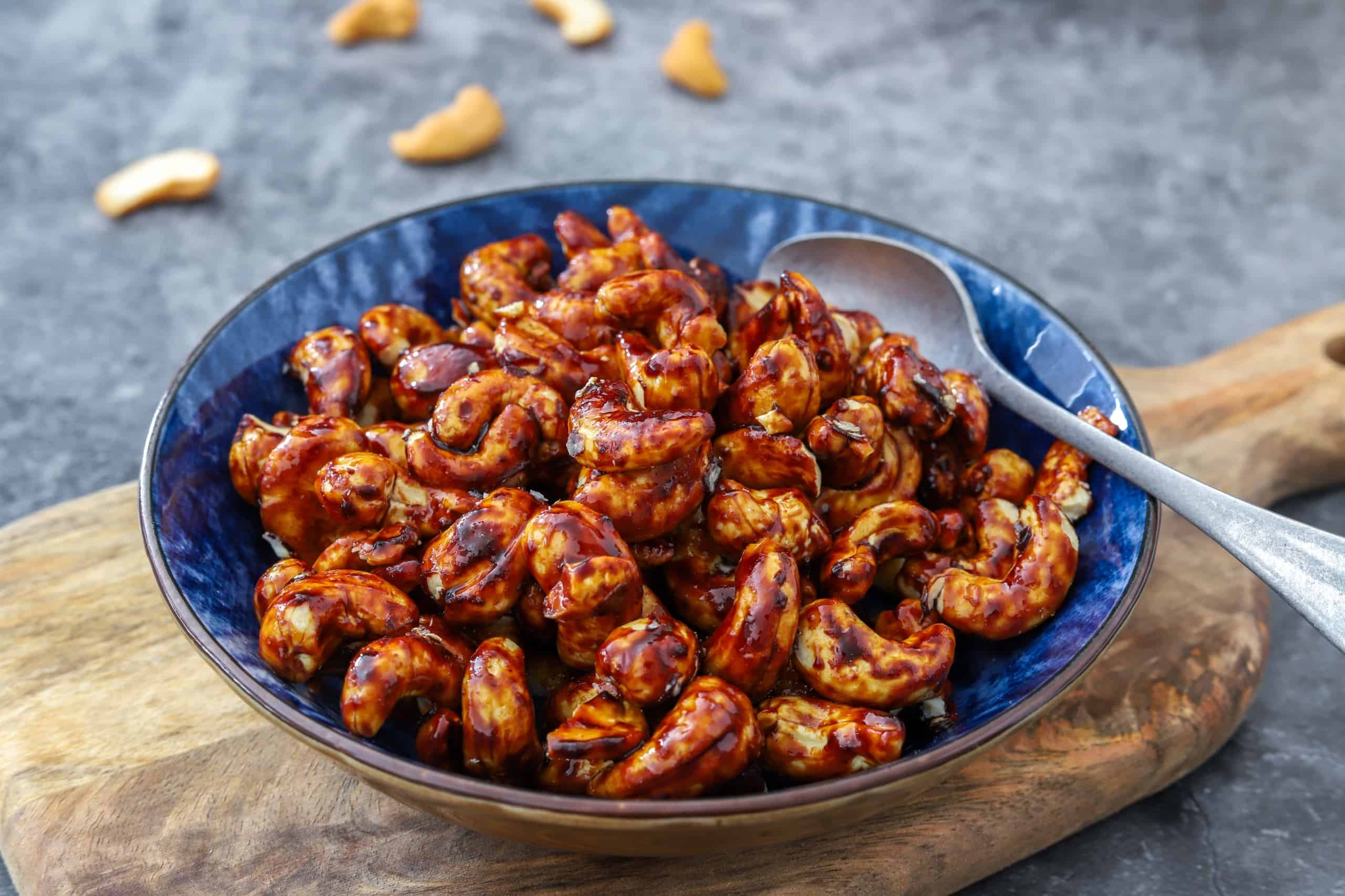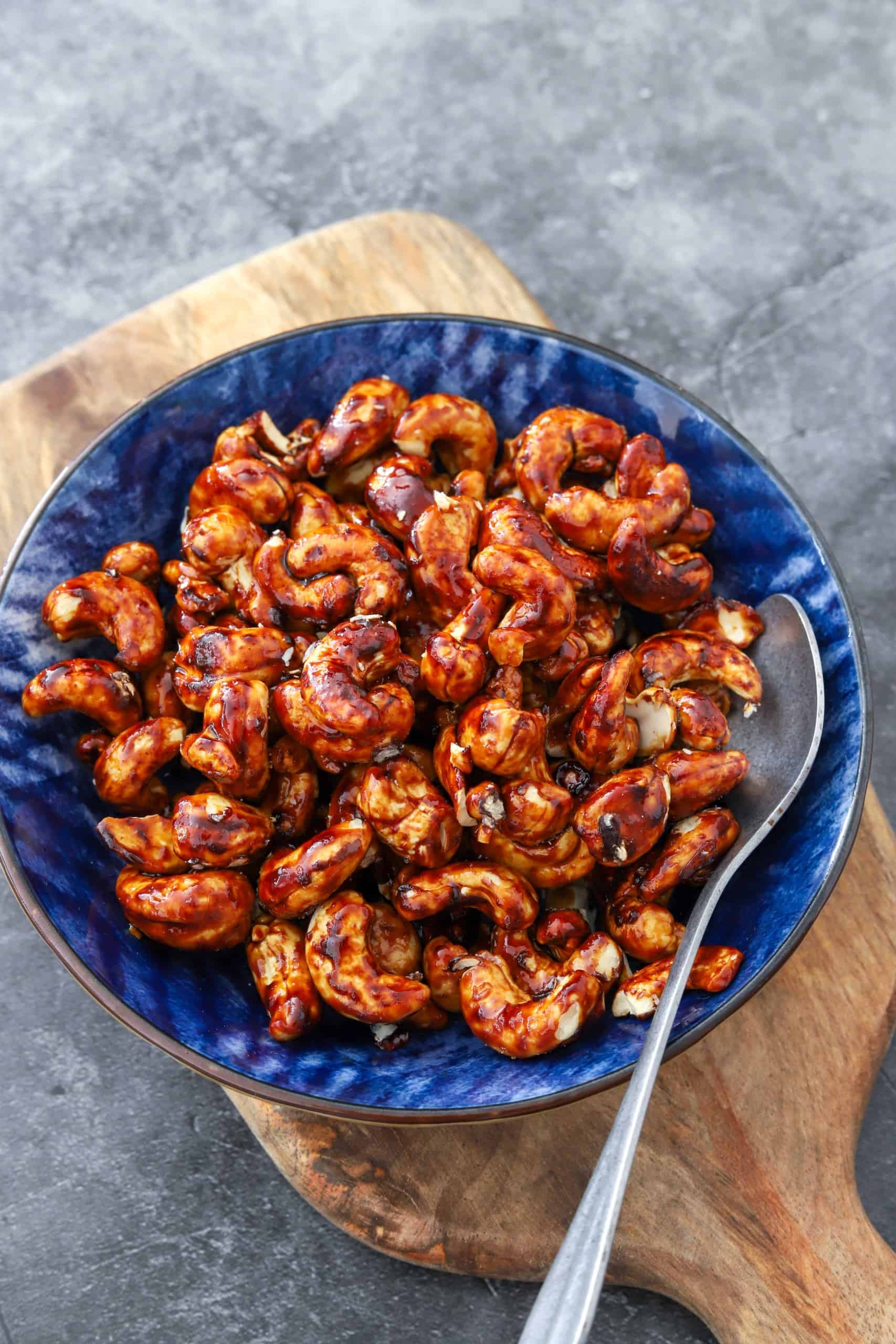 Ik zocht laatst naar een topping met pit voor over een ovenschotel. Genoeg noten in mijn voorraadkast, maar niet eentje met pit. Dus ik ging aan de slag, met deze cashewnoten met ketjap en sriracha als resultaat. Wat een feest!