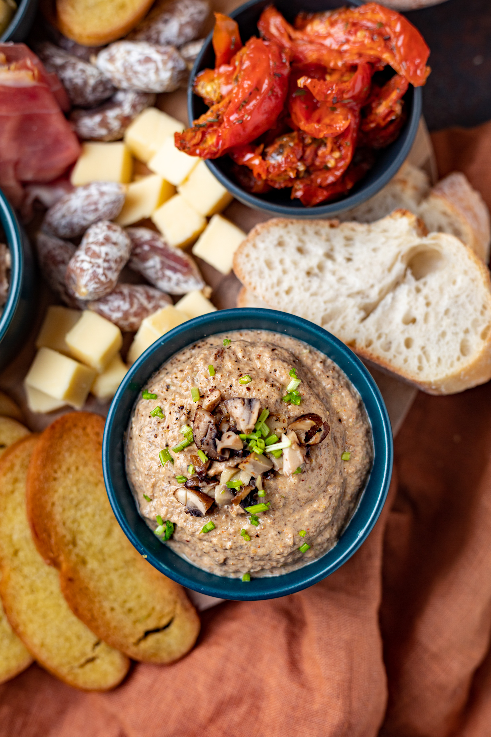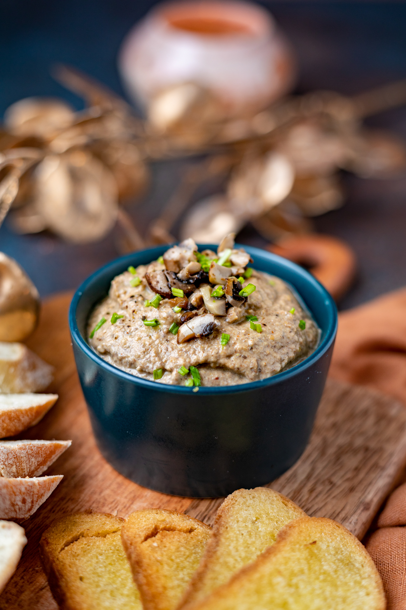 Serveer de champignonmousse met stokbrood, crostini’s of snackcups en je hebt een heerlijk vegetarisch gerechtje voor op de borrelplank. Wij waren er dol op thuis!