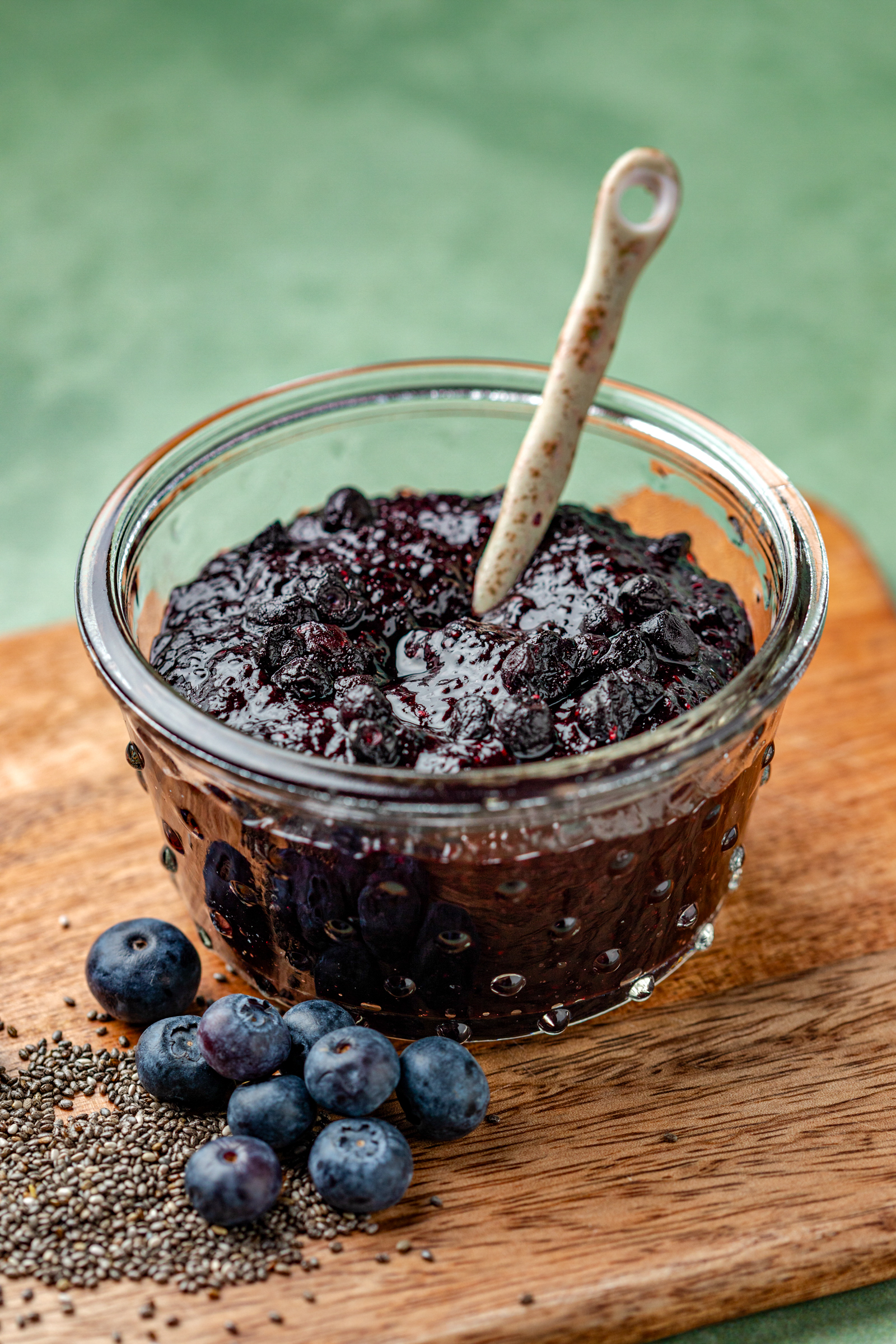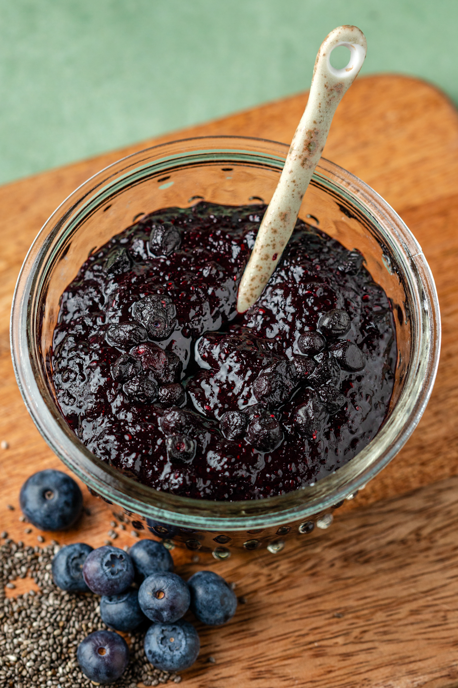 Voor de chiajam gebruik in dit recept blauwe bessen uit de diepvries, maar je kunt ieder soort diepvriesfruit gebruiken. Zo heb ik ook weleens chiajam met kersen en een vleugje vanille gemaakt, maar ook mango chiajam, bosvruchten chiajam en frambozen chiajam. Als je houdt van een avontuurtje is zelfs pompoen chiajam met pumpkin spice specerijen heerlijk om te maken.