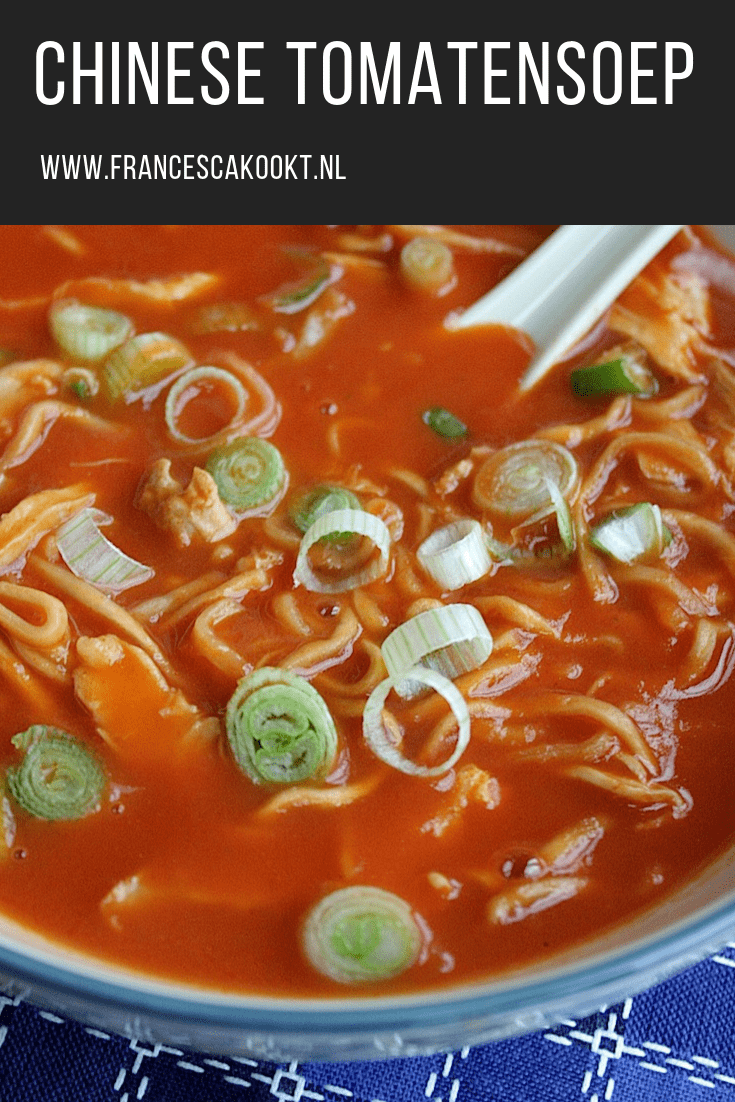 Afgelopen week kreeg ik de vraag via Facebook of ik een goed recept voor Chinese tomatensoep had. Die had ik dus niet, maar stond wel nog op mijn ‘to cook’ lijstje en van het weekend ben ik gelijk aan de slag gegaan. Voordat ik aan de slag ging, moest ik eerst even op onderzoek uit. Want hoe maak je die Chinese tomatensoep nou precies? We kennen dit soepje allemaal, van Chinese restaurants en vooral uit de pakjes die te vinden zijn in de supermarkt. Vroeger, toen ik nog een kantoorbaan had, was het ook een gewild 4-uurtje bij ons op kantoor. Een sachet openscheuren, in een mok gooien en wat kokend heet water erbij en klaar was je Chinese tussendoortje. Dat doen we dus niet meer, nu maken we die gewoon zelf.