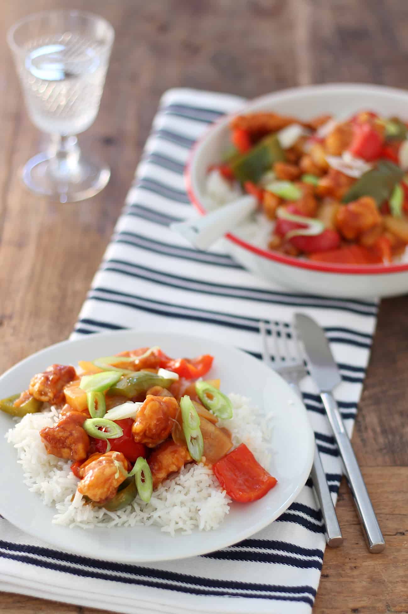 Ik wilde heel graag eens zelf de ‘echte’ Chinese zoetzure kip met rijst maken. Niet alleen maar met stukjes kip in een zoetzure saus. Maar met malse stukjes kip die eerst krokant gebakken zijn voordat ze in de saus gaan. Die dus. Nou daar had ik wat hulp bij nodig, want ik ben niet zo erg thuis in de Chinese keuken. Ik deed daarom onderzoek online en kwam terecht op de mooie blog van Nagi, haar recept was precies wat ik zocht. Met een paar kleine aanpassingen hier en daar ging ik aan de slag.