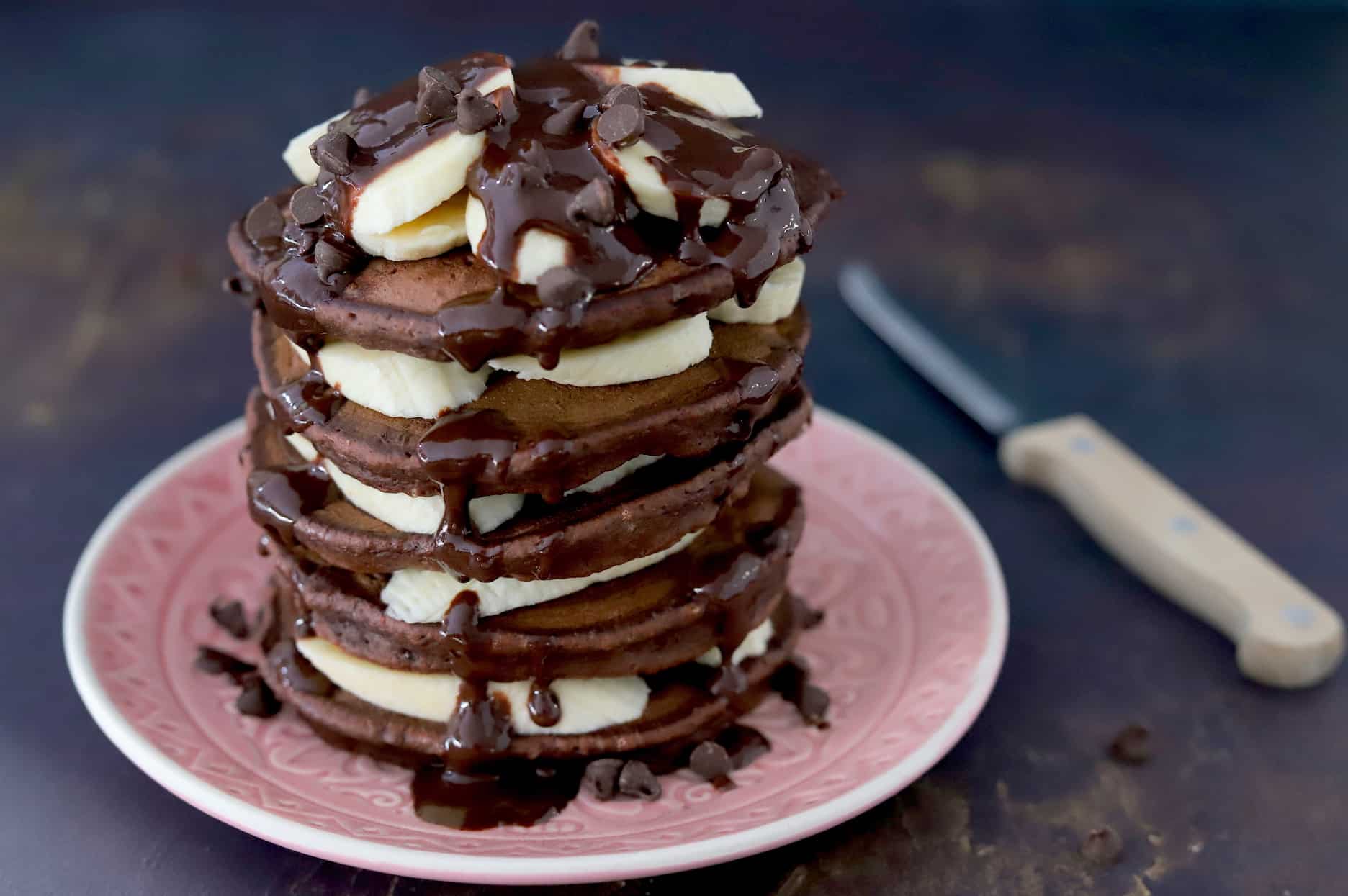 Mijn jongens thuis zijn echt dol op chocolade pancakes (alles met chocolade eigenlijk) en soms bakken we die ook als ontbijt. Normaal voegde ik daar ook suiker, ahornsiroop of honing aan toe, want het zijn kleine zoetekauwen die twee. Maar nu heb ik me dan toch een lekker recept gemaakt zonder deze toegevoegde suikers. De jongens, en ik, werden er wild van 😉