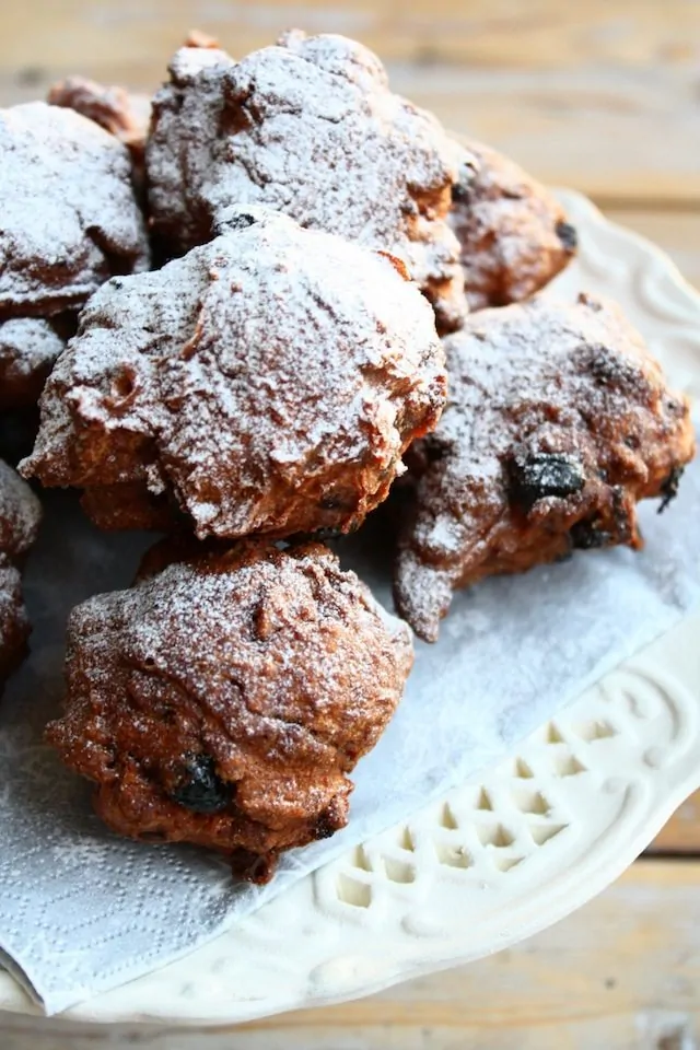 Oliebollen zelf bakken doe ik bijna nooit. Meestal parkeer ik mijn auto bij de beste oliebollenkraam van de regio en neem het ellenlange wachten op de koop toe. Dit jaar niet. Nee, er wordt thuis gebakken dit jaar. De vraag is dan welk recept je ervoor gebruikt, want je wilt wel de ultieme oliebol bakken natuurlijk. In mijn zoektocht kwam ik uit op de blog van Kayotic Kitchen die op haar beurt weer het ultiem beproefde recept van Eetschrijver had gebruikt (na een lichte aanpassing). Daar ben ik weer mee aan de slag gegaan en heb er chocolade oliebollen van gemaakt. Dat is weer eens iets anders en goed ook! Het recept krijgen jullie vandaag van me terwijl ik deze ochtend nog een tweede oliebol verorber. Wel even warm gemaakt in een oven die op 100 graden loeit. Want een zelfgebakken oliebol komt niet in de buurt van een magnetron. Dan blijft er namelijk niets over van het knapperige korstje dat de oliebol mede zo geliefd maakt.