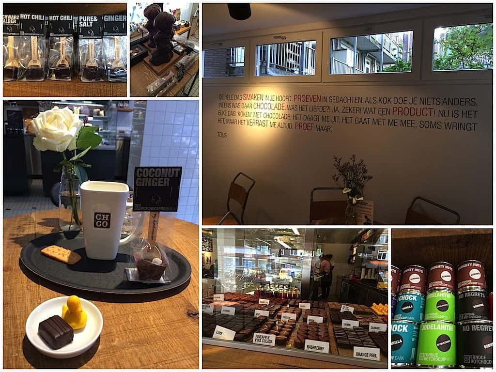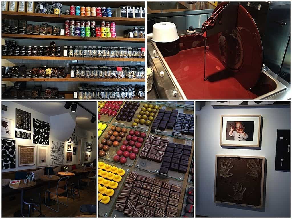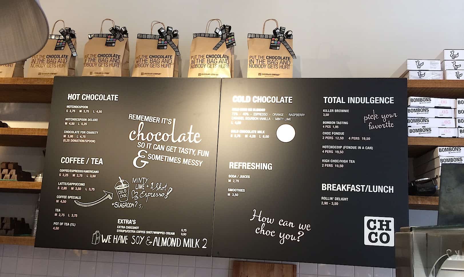 In de mooi verbouwde winkel kun je genieten van een hotchocospoon (waar het ooit allemaal mee begonnen is), een stukje heerlijke chocoladetaart, een bonbonnetje of andere chocoheerlijkheid. En tegelijkertijd is het ook een shop. Hier moet je echt zijn voor de bonbons (ik proefde de umami bonbon, een must try) en loop niet zomaar voorbij de wand met de eigen producten van Chocolate Company. Alle chocolade producten, van hotchocospoon tot chocolademelk, zijn homemade en van de beste kwaliteit chocolade. Koken met chocolade is de filosofie en dat proef je! En ze hebben te gekke verpakkingen. Als je je fondue hotchocdip met apfelstrudel de naam ‘Jodelahitiii’ geeft dan heb je serieus humor.