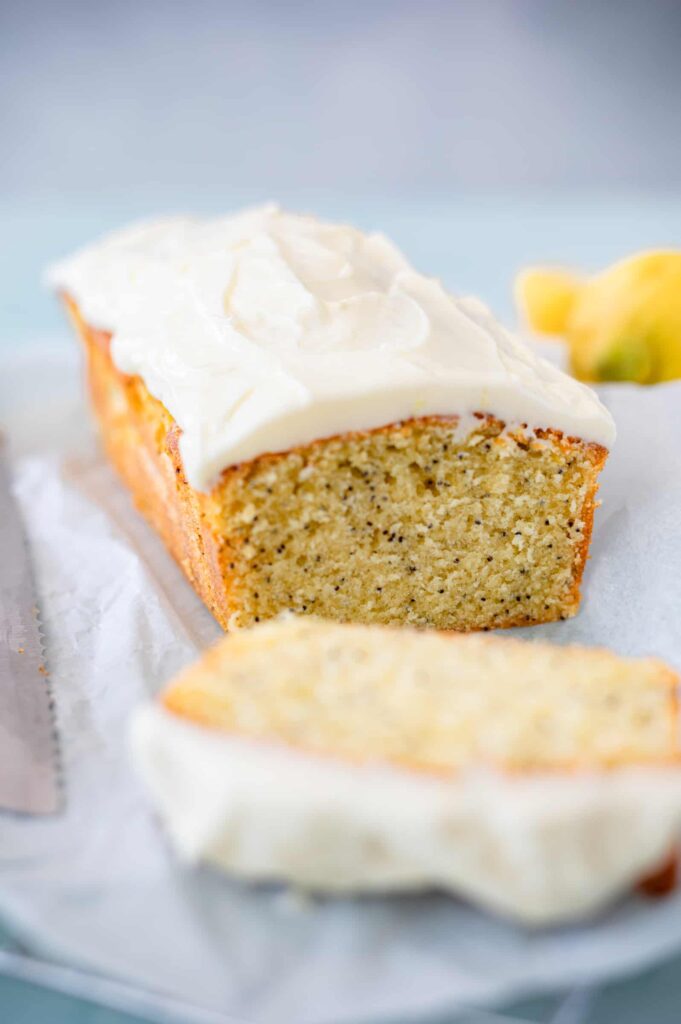 - Doe de boter, suiker, citroenrasp en het zout in een kom en klop dit enkele minuten tot een romig geheel. Voeg vervolgens de eieren één voor één toe, waarbij je het volgende ei pas toevoegt als het vorige volledig is opgenomen. Spatel de bloem en het bakpoeder door het beslag. Spatel tot slot het citroensap en maanzaad door het beslag.