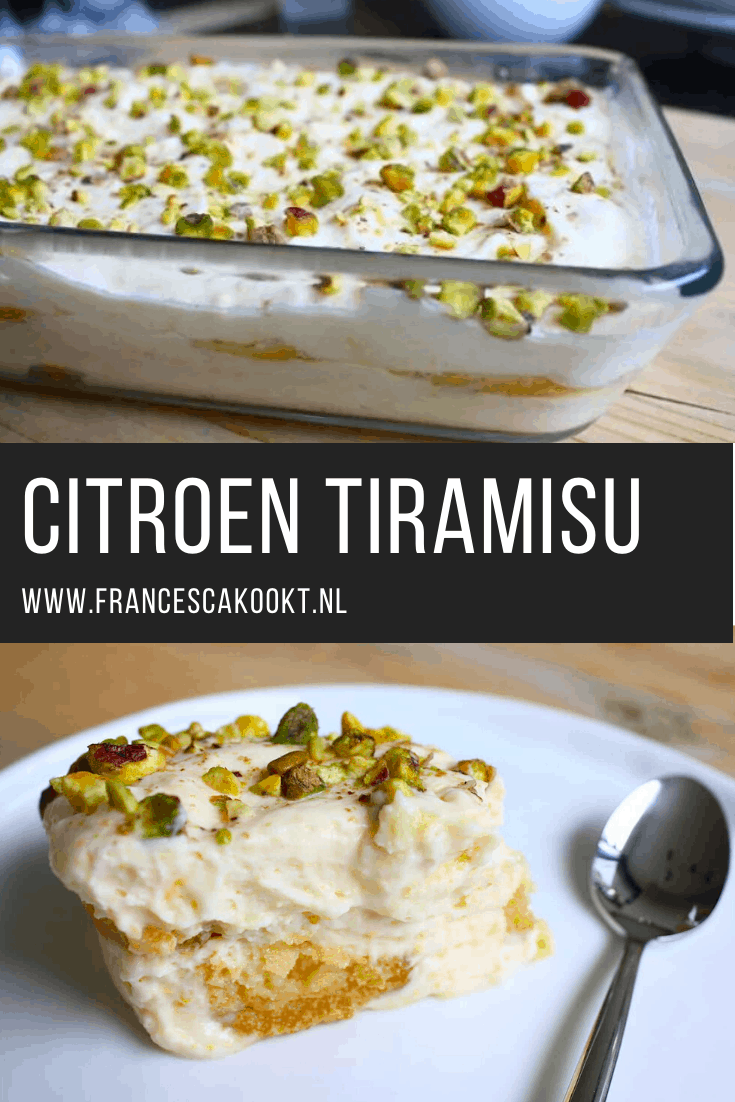 Er stond al tijden een citroen tiramisu op mijn kookwenslijstje. Een aantal weken geleden kon ik mijn behoefte bevredigen, aangezien er een Italiaanse lunch op het programma stond. Ik wilde een frisse tiramisu maken en mijn oog viel op dit recept uit Lidia’s Italy waar ik vervolgens mijn eigen versie van heb gemaakt. Met ‘amaretti morbide’, oftewel zachte amarettikoekjes en een topping van geroosterde pistache. Waarmee ik de explosie van zoet en zuur meer in balans bracht. Het resultaat: een van de meest zalige toetjes die ik ooit zelf heb gemaakt. Hier gaan jullie blij van worden!
