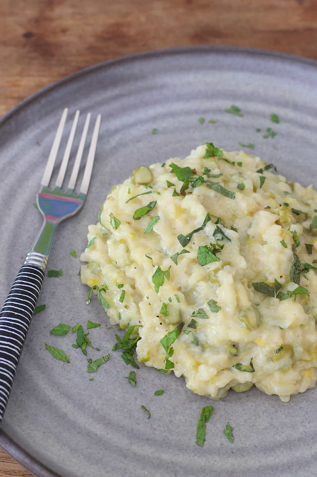 5. Proef de citroenrisotto en breng op smaak met peper, eventueel extra zout en de munt.