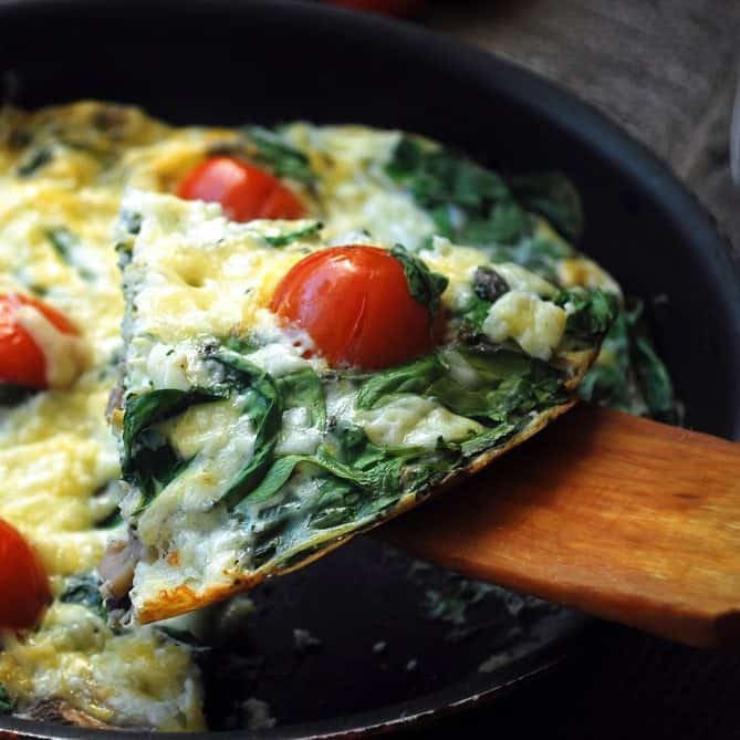 Dit recept voor courgette omelet met tomaat en spinazie is perfect voor een lichte, vegetarische avondmaaltijd. Ook heerlijk als lunch.