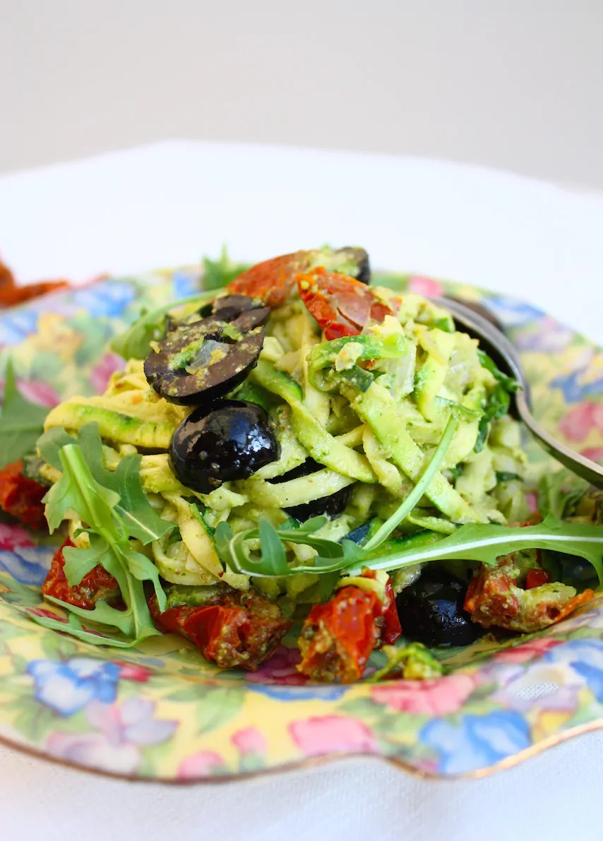 Het idee hiervoor ontstond omdat het de laatste tijd steeds meer op lente begint te lijken, hierdoor kreeg ik zin om een gerecht te maken wat daar ook echt bij past. Ik dacht aan veel groenten, olijven, zongedroogde tomaatjes en een lekkere pesto erbij. Het is super makkelijk om te maken, zeer smaakvol en bestaat grotendeels uit groenten. Hier thuis willen wij wel vaker courghetti!