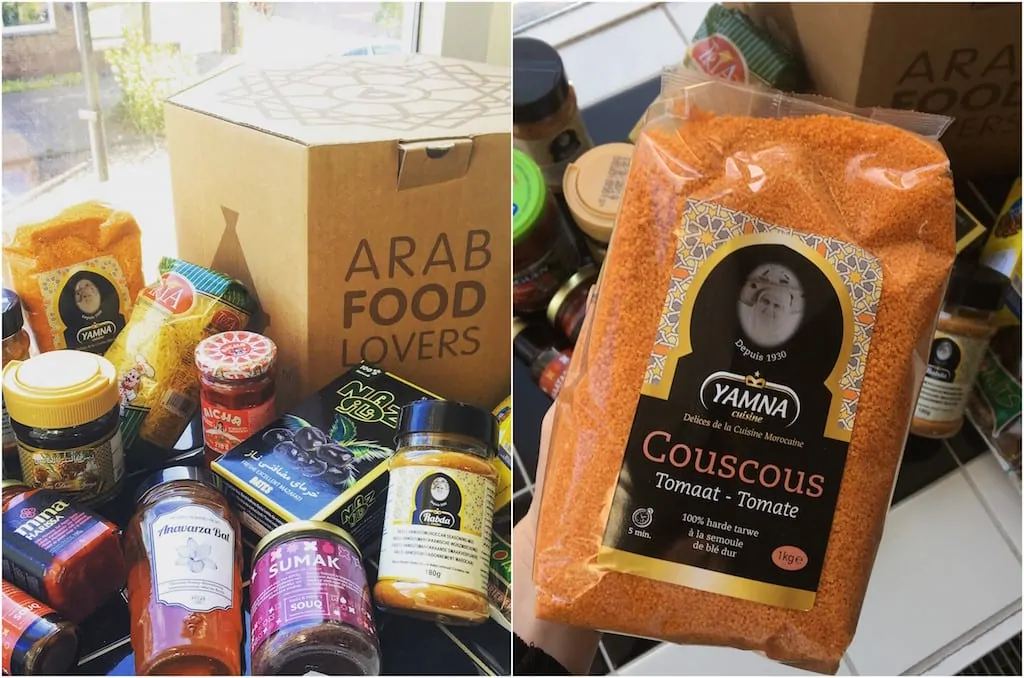 Je kunt wel begrijpen dat ik de dozen even zat was, maar ik had de Arab Food Lovers box ook nog en voor die maakte ik toch een uitzondering. Deze box zit namelijk vol met producten van het nieuwe online platform Arab Food Lovers, dé Europese online Arabische speciaalzaak. Aangezien ik fan ben van de Arabische keuken, was ik heel nieuwsgierig. Na het openen werd die nieuwsgierigheid alleen maar meer want er zaten heel veel interessante producten in. Ik heb bijvoorbeeld nog nooit van vogeltongpasta gehoord, dat is pasta maar het lijkt op rijst. En paprikapasta, daar heb ik ook nog nooit mee gekookt. Natuurlijk zat er ook harissa (Marokkaanse sambal), ras el hanout en couscous in het pakket, wat typisch Arabische producten zijn. Ik besloot aan de slag te gaan met de tomatencouscous en de sumak (een specerij wat als smaak een mix van citroen en peper is en wordt gemaakt van de gemalen bes van de sumakplant). Het bleef niet alleen bij de tomatencouscous en sumak, ik voegde ook de ras el hanout en harissa uit de box aan deze couscous met kip en sumak toe.