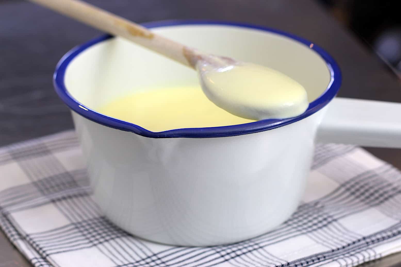 Custard (bewaar de overgebleven custard afgedekt in de koelkast en eet bij het ontbijt (pancakes) of maak er nog een toetje van met gebakken appeltjes)