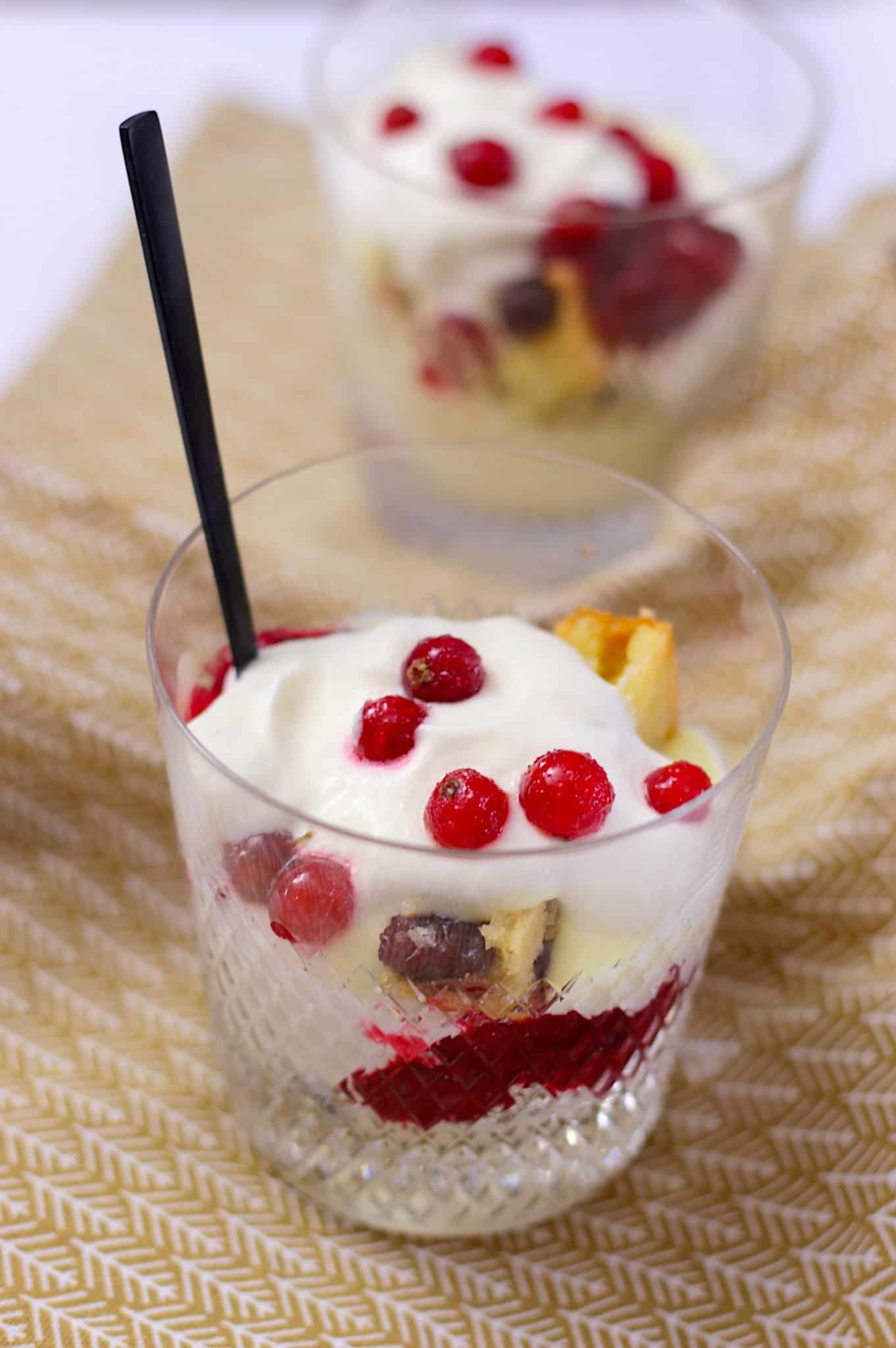 Tip: in plaats van mini trifles kun je er ook een grote trifle van maken in een glazen schaal.