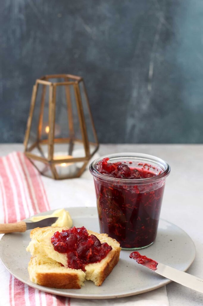 - De cranberryjam kun je volledig voorbereiden en in een afgesloten potje in de koelkast bewaren.