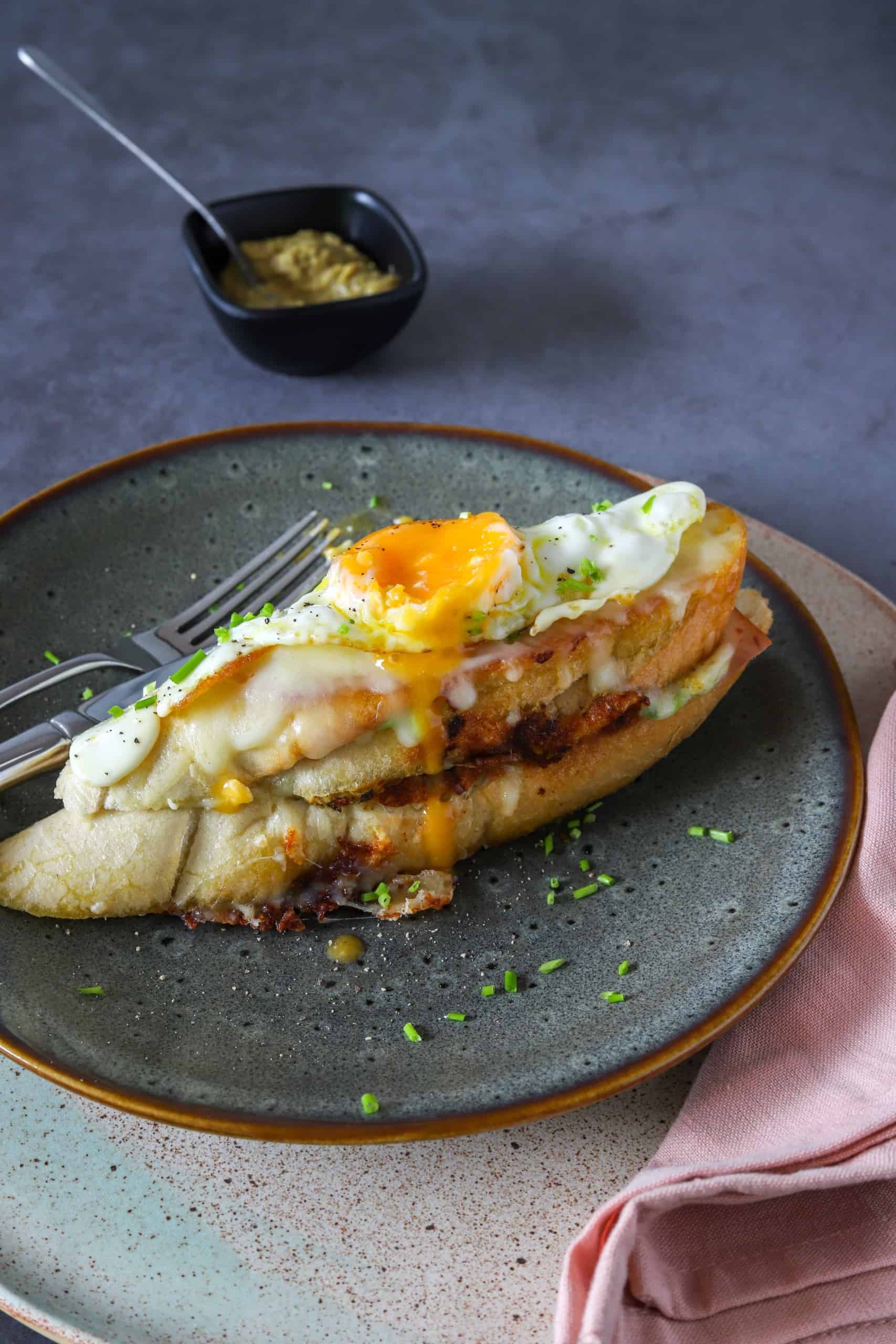 Wanneer je in Frankrijk of België een croque bestelt, krijg je (meestal) een zalige tosti voorgeschoteld. Er zijn verschillende varianten en de croque madame is de variant met het gebakken spiegelei boven op de tosti. Met zachte dooier uiteraard, want dat maakt deze croque zo onweerstaanbaar lekker.