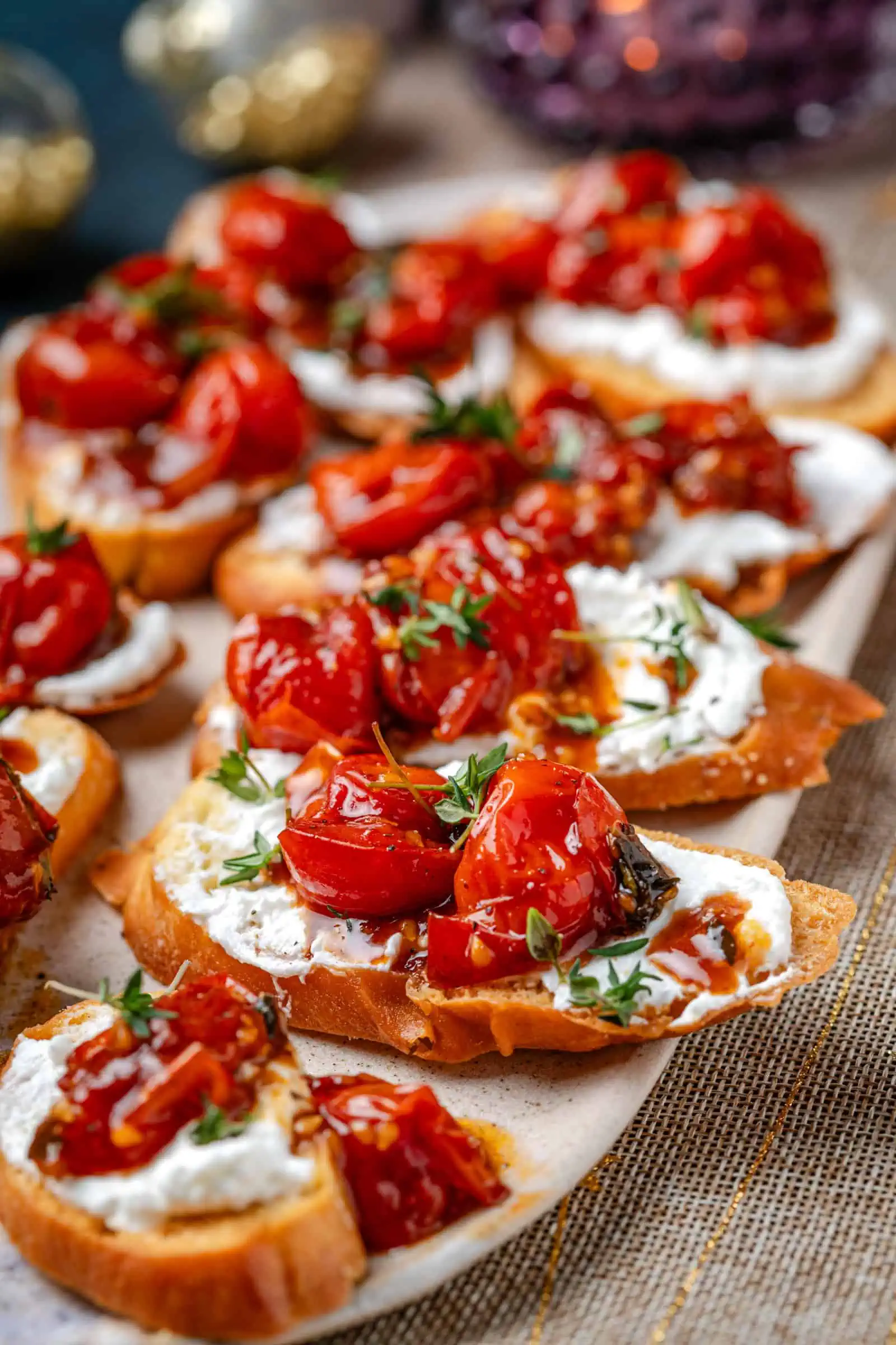 - Wil je dit gerecht voorbereiden? De geroosterde Honingtomaten kun je volledig voorbereiden en afgedekt in de koelkast bewaren tot gebruik. Laat ze wel eerst op kamertemperatuur komen voor de lekkerste smaak. De crostini’s kun je ook vast maken (tot 24 uur van te voren) en in een luchtdichte verpakking bewaren. Het besmeren en garneren doe je op het laatste moment.