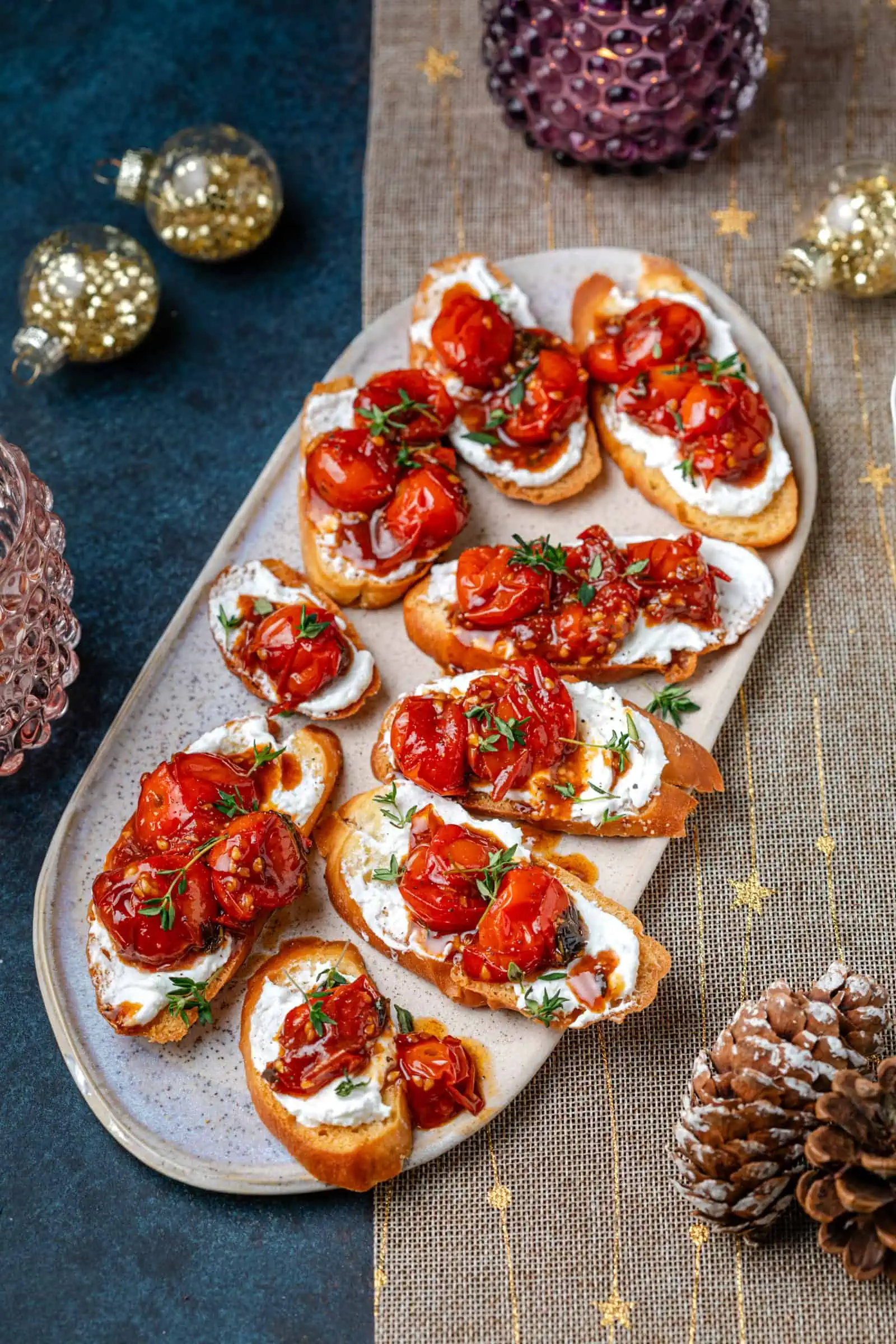 Op zoek naar een feestelijk vegetarisch borrelhapje? Maak dan deze crostini’s met geitenkaas, geroosterde Honingtomaten en tijm! Hartstikke makkelijk om te maken en heerlijk rijk van smaak door de Honingtomaten die nog lekkerder worden doordat je ze roostert met balsamicoazijn en honing.