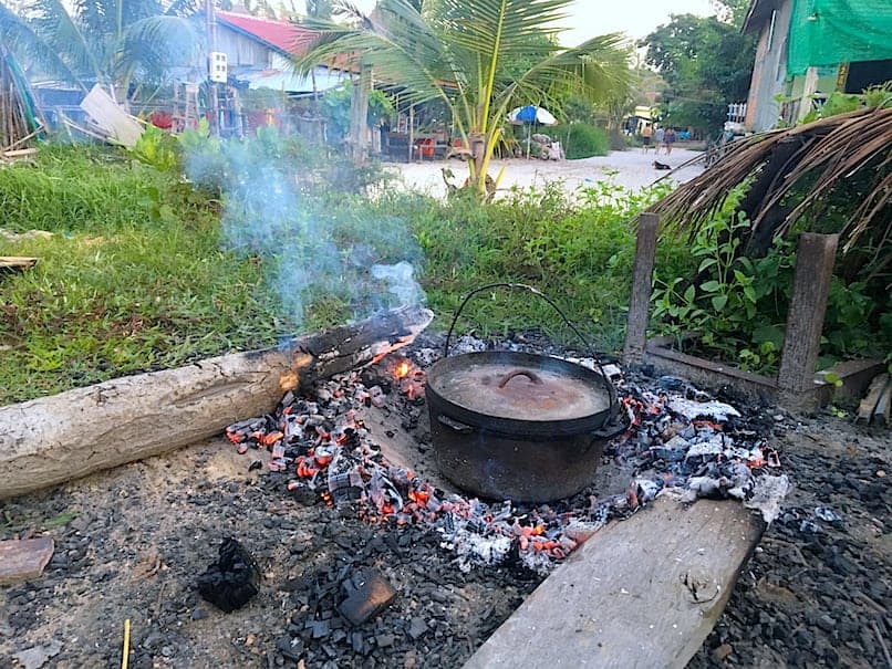 In Cambodja zijn we minder lang verbleven dan in Vietnam, hier hebben we vier dagen op een eiland (Koh Rong Samloem) gespendeerd wat nog niet zo toeristisch was en ook niet erg ontwikkeld. Zo was er nergens wifi. Hier was het erg heet en aten we ook weer veel fruit en lichte maaltijden zoals gebakken rijst met groenten of salades. En we hebben een keer met de Australische eigenaar van ons hostel pizza op open vuur gemaakt, totaal niet Aziatisch maar wel heel cool om een keer te doen!