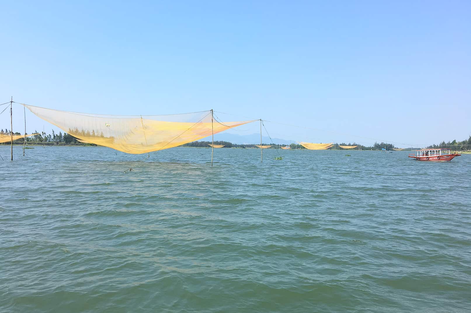 Van de markt gingen we met een boot naar een eiland waar maar zo’n 300 mensen wonen. Veel van hen verlaten niet vaak het eiland omdat je alleen per boot naar de stad kunt. Onderweg kwamen we veel visnetten tegen. Ze vissen daar namelijk door grote netten op houten palen boven het water te zetten. ’s Nachts schijnen ze dan met lampen onder het net en dan komen alle vissen erop af. Vervolgens hoeven ze het net dan alleen te laten zakken en weer omhoog te takelen.