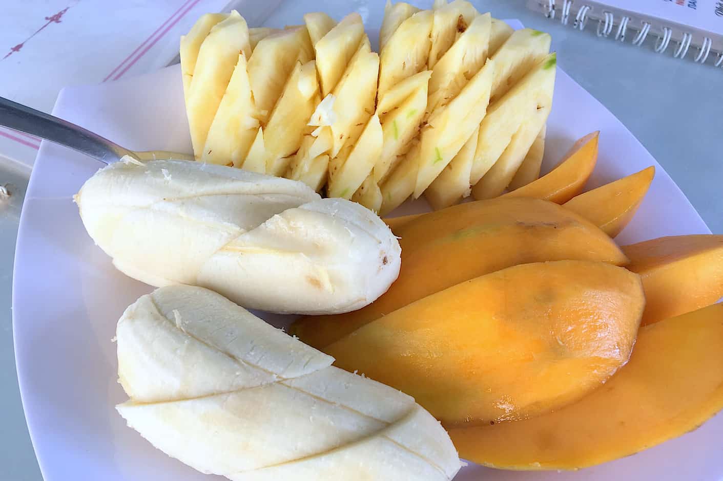 Wat we ook graag ontbeten was vers fruit. Vooral in het zuiden van Vietnam heb je onwijs veel fruit dat allemaal zo lekker van smaak is. En ook al was het bekend fruit, het smaakte daar toch anders. Een mango smaakt daar echt naar mango. Dat fruit kocht je dan op straat of op de markt en werd voor je neus schoongemaakt en in stukjes gesneden. Dit kostte ook weer vrijwel niets.