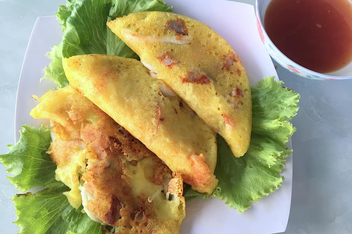 Langzaam reisden we verder naar het zuiden van Vietnam. Hier was al het verse fruit weer volop vertegenwoordigd. In deze regio groeit het fruit zelf namelijk ook heel veel. Verder genoten we van kokosnoten op het strand en nog steeds zo veel mogelijk lekkers in de lokale tentjes. Een van die dingen waren de Bahn Xeo/Vietnamese pancakes, oftewel rijstpannenkoeken. Die pannenkoeken worden gemaakt van rijstbloem, kokosmelk en kurkuma en vervolgens gevuld met vis, verse kruiden en groenten. Heerlijk!