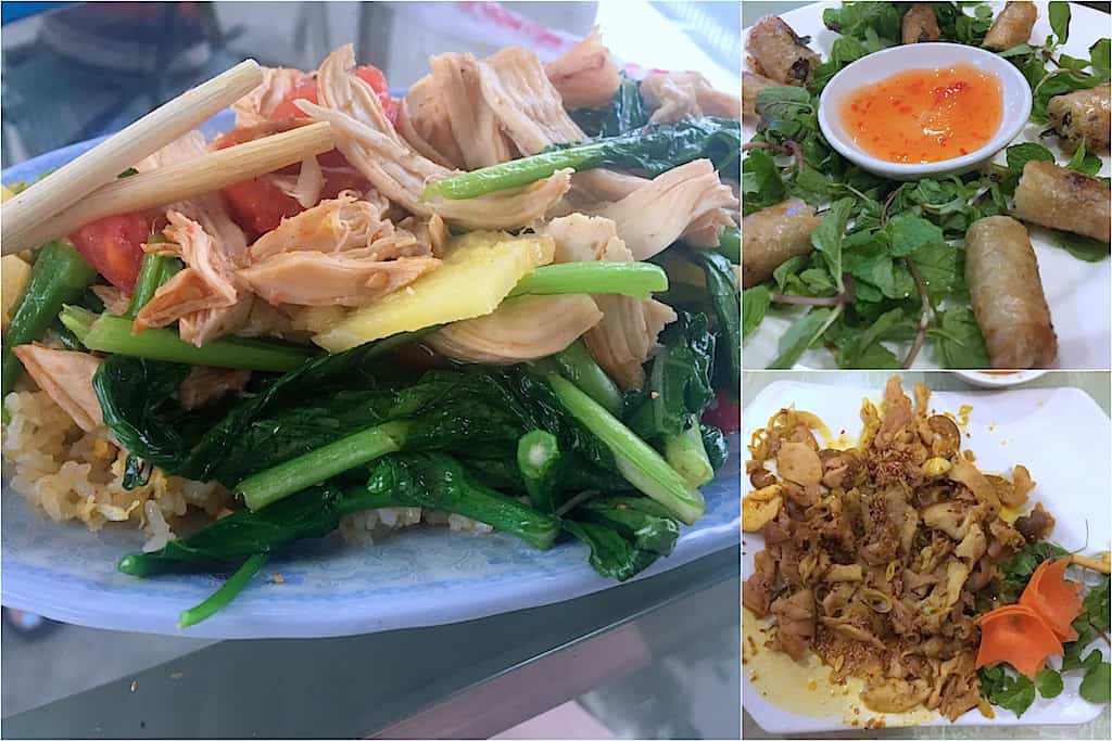 Maar goed, overal in deze regio wordt dus geit gegeten. Ons werd ook aangeraden het een keer te proberen, dus die avond heb ik geit besteld (rechtsonder op bovenstaande foto). Ik probeerde het beeld van de middag een beetje weg te denken, het is hun cultuur en tenslotte ben ik daar ook om die cultuur te ontdekken. Het gerecht dat ik had besteld heette De Nuong, hier wordt het geitenvlees gebakken en aangezien het snel taai kan worden is dit de manier waarop het vlees het meest mals blijft. Het gebakken geitenvlees meng je samen met verse kruiden, rol je op in een rijstvel en dip je in de pittige saus. Ik vond dit gerecht verrassend lekker! Verder at ik in Ninh Binh gefrituurde springrolls, die kom je in de rest van Vietnam ook veel tegen, en een heerlijk gerecht met gebakken rijst, spinazie, ananas en kip.