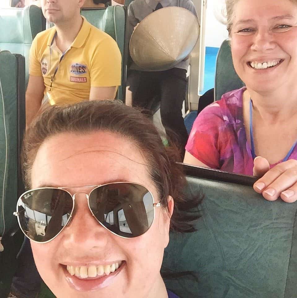 Na een uitgebreide rondleiding, een geweldig lunch en een boottrip naar de farms waar de panga geweekt wordt, is het tijd om weer de bus in te gaan. Een rit van 4 uur naar de airport en ik zit er een beetje doorheen. Zoveel mooie indrukken en zo weinig energie over. Ik val in slaap tegen de brede schouder van Jelmer (we snapten daarna gelijk ook waarom hij zo hard traint), schrik wakker (ik hoop niet dat ik op hem heb gekwijld, maar waarschijnlijk wel) en probeer mezelf met chocolade weer fit te krijgen. Helaas pindakaas, de koek is even op (om maar even in de foodietermen te blijven). Na een snelle douche en schone kleren ben ik weer helemaal het dametje en we vertrekken naar de airport. Ons bliksembezoek zit erop en we sluiten 48 uur Vietnam af met een goed glas wijn.