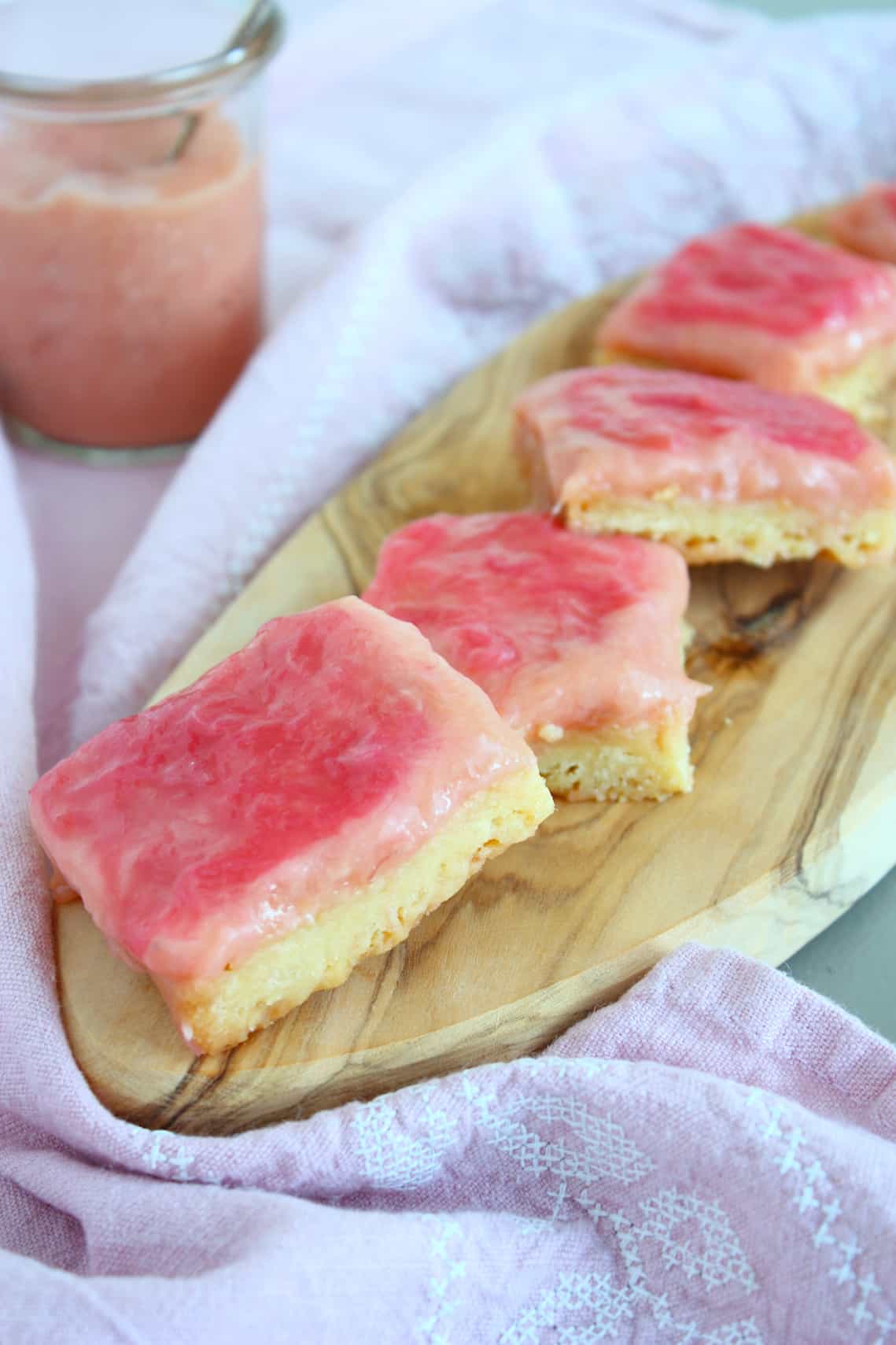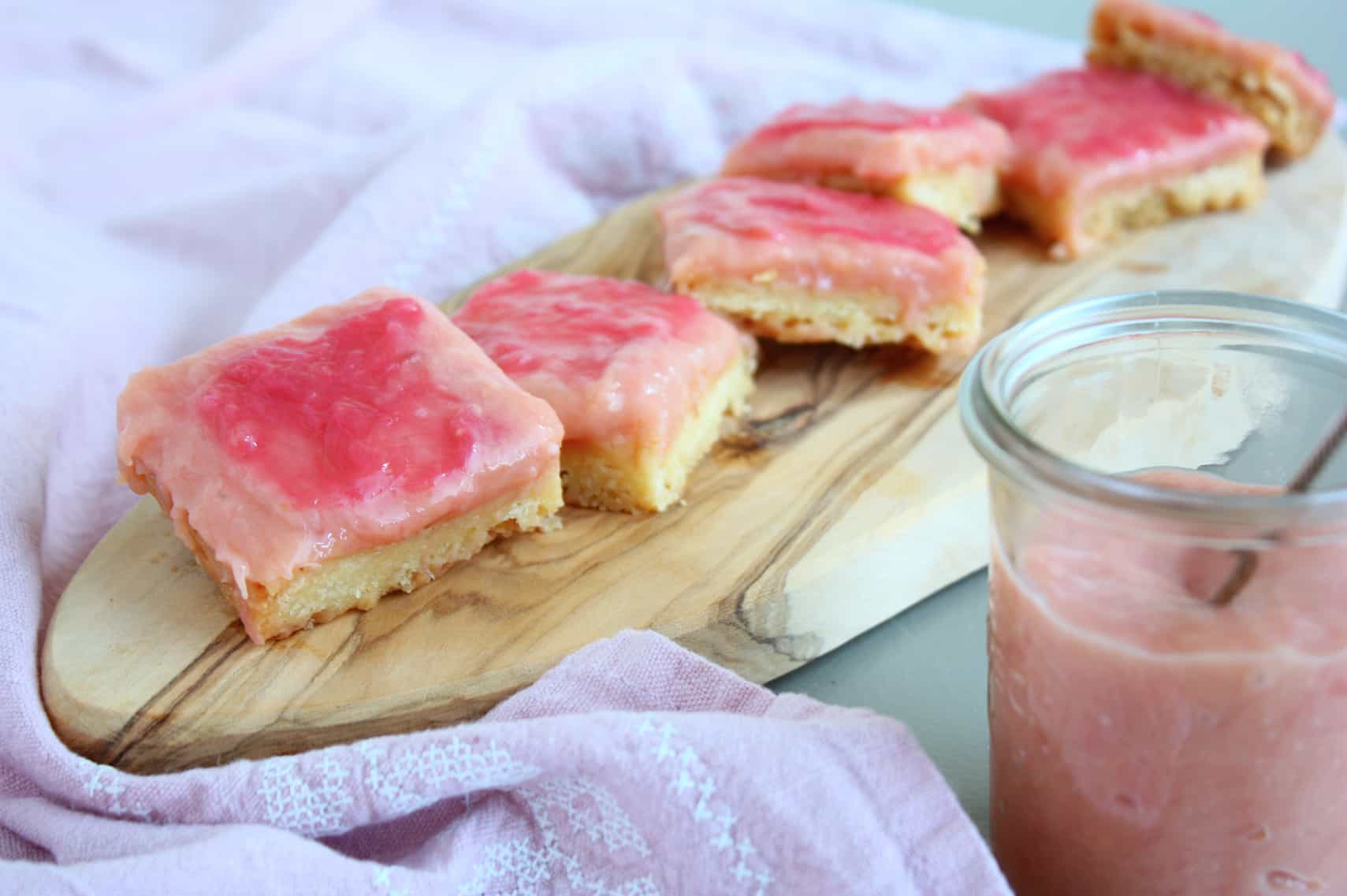 Deze rabarber bars zijn kleine verwennerijen waar je optimaal van mag genieten. Serveer ze op een verjaardag, als petit fours, bij een high tea of een babyshower want daar passen ze perfect bij!