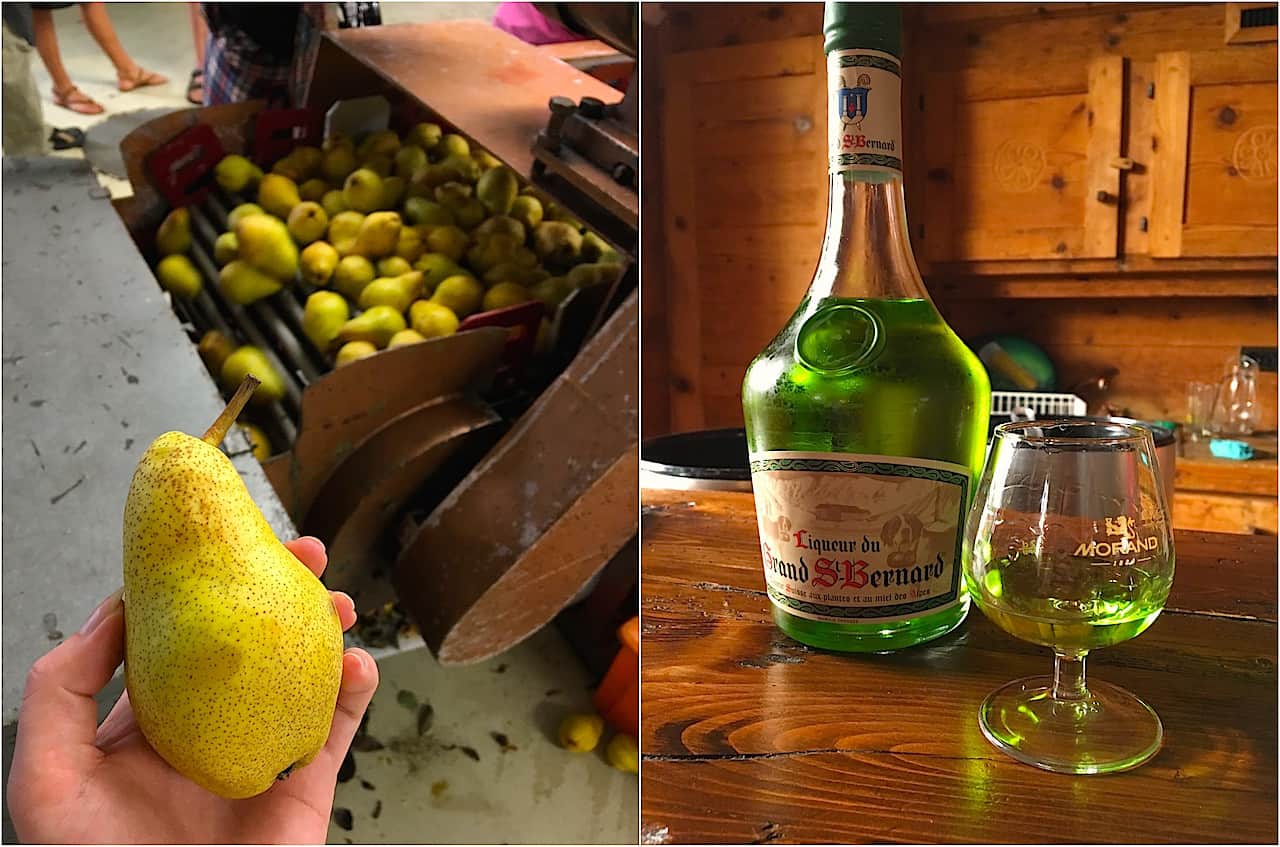 Op dag 1 gingen we naar de distilleerderij van Morand in het plaatsje Martigny. Sinds 1900 wordt daar op ambachtelijke wijze vanuit gefermenteerd fruit alcoholische drank gebrouwen. In de regio is namelijk veel fruit te vinden, voornamelijk appels, peren en abrikozen. Destijds begonnen ze met het brouwen van likeuren met kruiden vanuit de bergen en dit werd snel populair. De daaropvolgende generaties zijn dit verder gaan ontwikkelen, in de vorm van nieuwe producten die ook buiten de grenzen werden ingekocht. De distilleerderij is gemoderniseerd, maar de ambachtelijke wijze van productie is nog altijd bewaard gebleven.