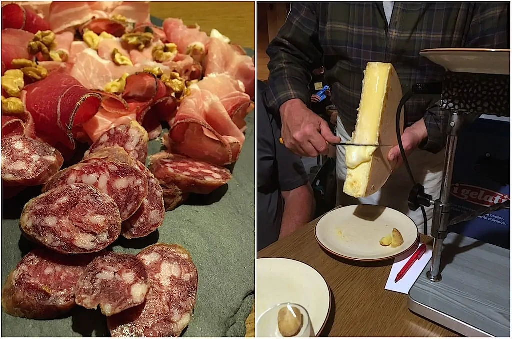 Denk je aan Zwitserland dan denk je aan raclette. Al sinds 1547 een typisch gerecht uit de Valais. We bezochten kaasmakerij Fromage de Mille waar de raclette op ambachtelijke wijze wordt geproduceerd. En dat houdt onder andere in dat je de kaas met zo vers mogelijke melk van de regionale koeien en in de juiste leefomstandigheden maakt. Voor de raclette betekent dat in de bergen met d’Hérens/Eringer koeien. De koeien leven daar in hun oorspronkelijke woongebied en geven de beste melk om zodoende de beste kaas op te leveren.