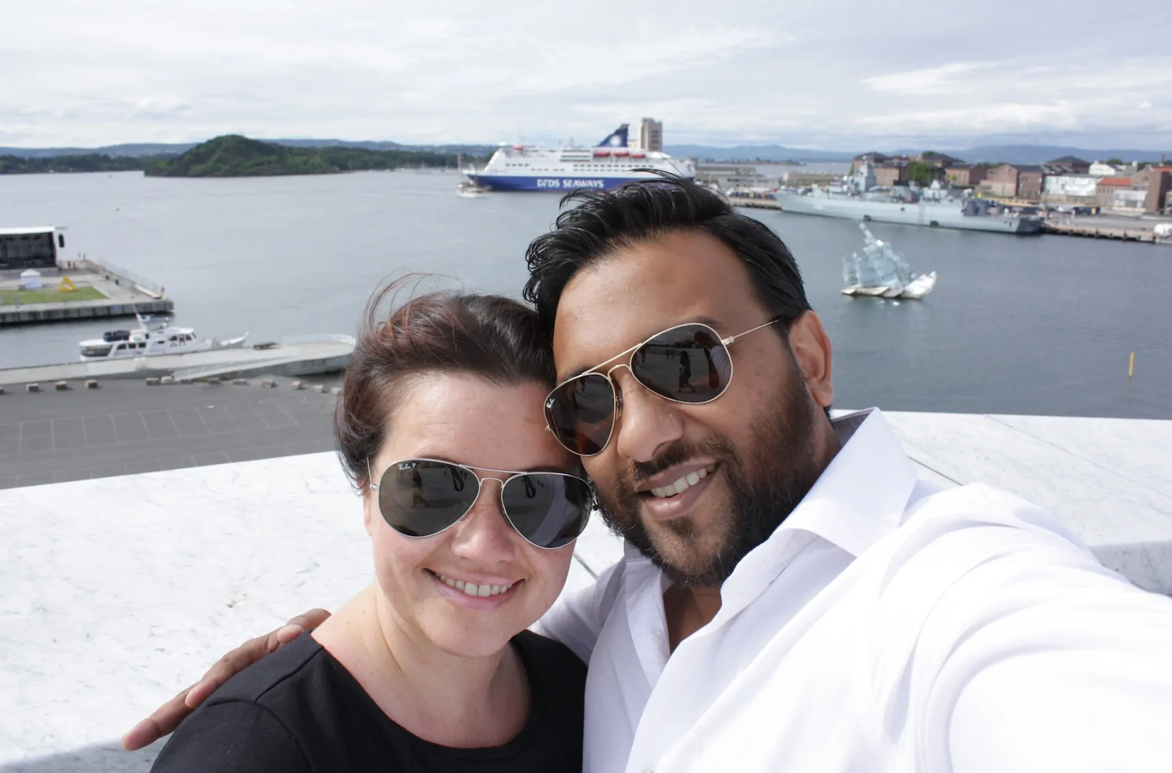Via de Opera House en een wandeling langs de zee en door een deftig deel van Oslo kwamen bij de Akershus Festning uit. We waren benieuwd of we hier een restaurant gingen vinden. We liepen omhoog, om de heuvel heen en onze mond viel letterlijk open. In de verte doemde Restaurant Festningen op met werkelijk waar het mooiste uitzicht van heel Oslo. Het restaurant is aan de prijs, maar sinds kort hebben ze buiten ook een prachtig en laagdrempelig terras waar je zeer goed kunt eten. Wij bestelden het dagmenu met paddenstoelen op toast met een gepocheerd ei gevolgd door een stuk kabeljauw met schelpdieren, risoni, spinazie en tomaat. Met een valrhona dessert toe. De gehele lunch bleven we maar kijken naar de fjorden, de haven en al het prachtigs wat er te zien was.