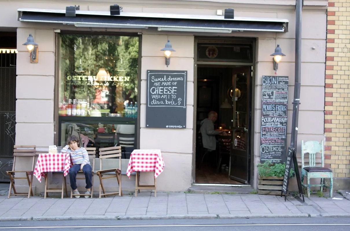 Ostebutikken is een bistro en delicatessenzaakje. Hier eet je al een bouillabaisse voor 189 kronen.