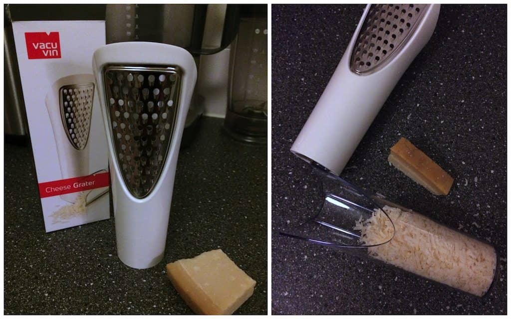 1. De Vacuvin kaasrasp: deze rasp heeft een uitneembaar reservoir waar alle kaas in wordt opgevangen. Na het raspen haal je het bakje uit de rasp en kun je het gebruiken om over een gerecht heen te strooien of je zet het op tafel. Deze rasp kost € 9,99.