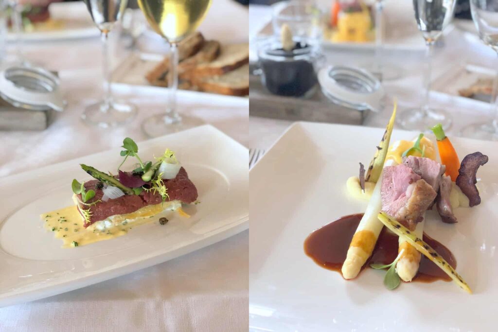 Vooraf at ik een crème van avocado met gerookte zalm, asperges, gamba in kroepoek en limoenmayonaise. En als tussengerecht at ik skrei met spaghetti van courgette, bimi, hollandaise en parelgort met limoen en currykruiden. Ik moest me beheersen om van dit gerecht het bord niet schoon te likken.