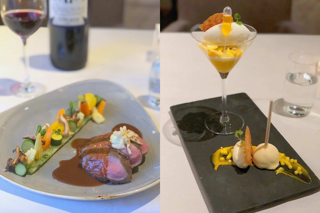 Als hoofdgerecht kreeg ik asperges met verschillende groenten, lamslende met pestokorst en klassieke lamsjus met gepofte knoflook. Die jus, jongens! Wat een feest. Het diner eindigde met een dessert met mango, limoncello bavarois, limoenijs en licor 43. En daarnaast nog een dessert met mango, witte chocolademousse en lolly van mango ijs met witte chocolade. Vooral de combinatie mango met witte chocolademousse was bij mij favoriet.