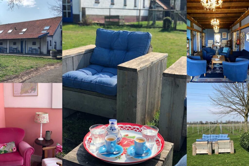 In Lemelerveld vind je bed & breakfast De Wijnstaete van Luigi en Annemarie. Een prachtige plek waar je je even in het buitenland waant bij aankomst. Het hoofdgebouw waarin 4 sfeervolle kamers en een woonkamer zijn gevestigd, is geverfd in de kleuren wit en blauw en ademt sfeer. De mooiste plek is de veranda aan de voorzijde waar je ’s ochtends (bij mooi weer) het ontbijt geserveerd krijgt met uitzicht over de wijnranken. Het heet niet voor niets Wijnstaete, want van alle druivensoorten samen maken ze niet onverdienstelijk witte en rosé wijn.