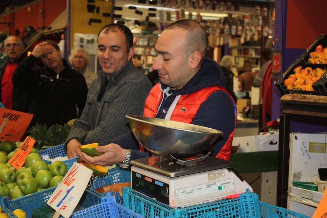 Want de Oosterse Markt greep me. Op een hele positieve manier. Ik was onder de indruk van al die kramen met de meest prachtige producten. Van de liefde waarmee mensen over hun product praten. Van de hele families die samen al jaren een notenbedrijf hebben en iedere dag hun noten vers branden. Van de Turkse man die liet zien hoe je een mango heel makkelijk kunt schillen en dat je het na 100 keer oefenen wel kunt. En dat je die 100 mango’s dan natuurlijk wel bij hem moet kopen. Van de kruiden. Van de geuren. En van de geluiden.