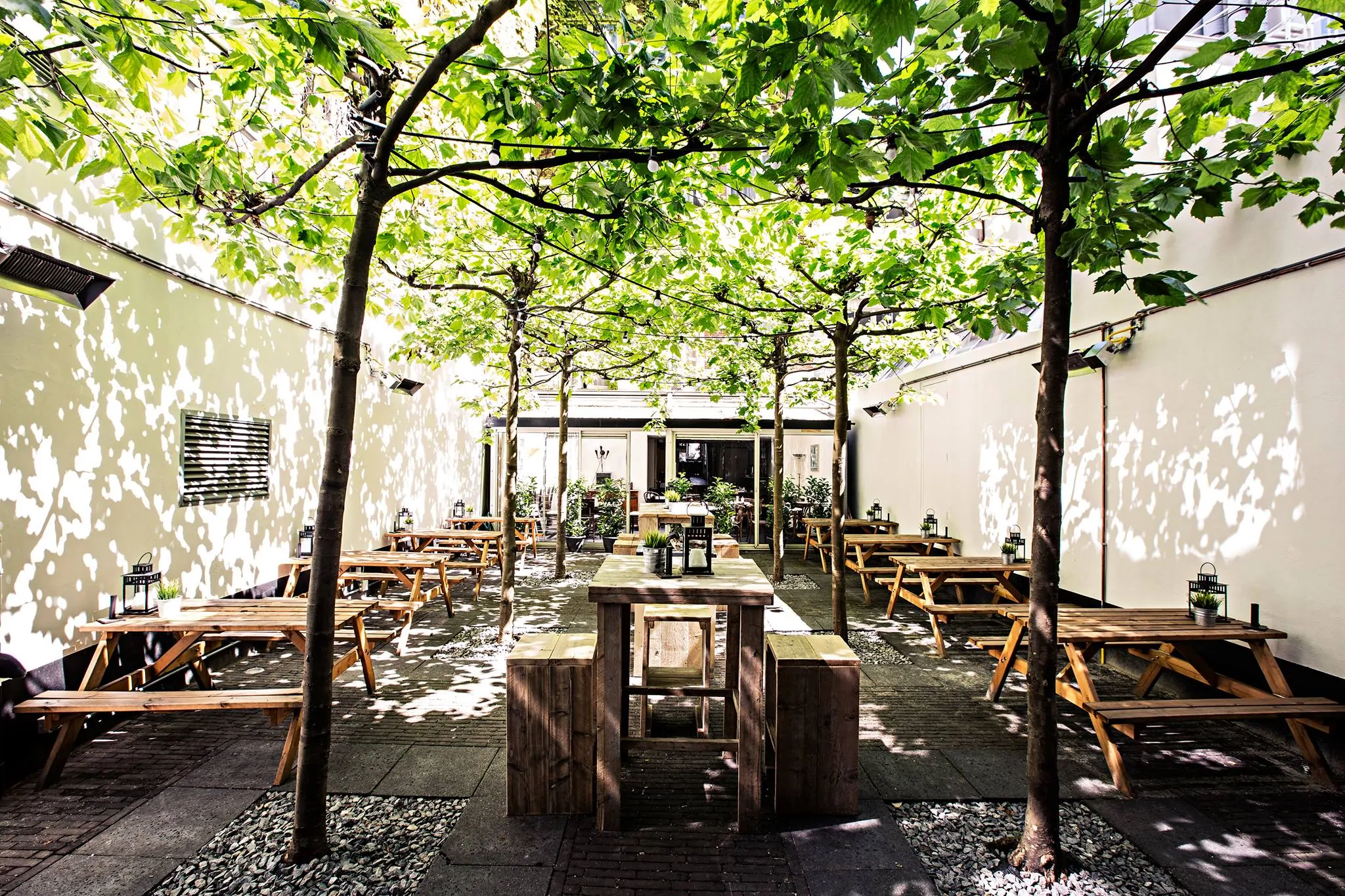 De tuin van Restaurant Herengracht is onlangs vernieuwd waardoor je nu heel ontspannen aan houten picknicktafels kunt genieten van een steak van de BBQ of een van de andere heerlijke gerechten van de kaart. Of kies voor een 3-gangenmenu voor € 29,50 en blijf lekker hangen totdat ‘s avonds alle kaarsjes en lampjes in de tuin aangaan. Ze zijn van maandag t/m zondag vanaf 11.00 uur geopend.