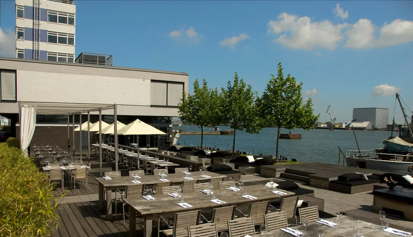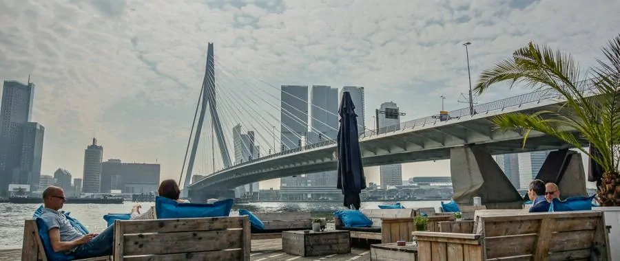 Het mooiste terrassenuitzicht van Rotterdam vind je bij bar restaurant Prachtig aan de Maas. Prachtig kijkt uit op de Kop van Zuid met De Rotterdam van Rem Koolhaas als eyecatcher. Het terras ligt aan de voet van de Erasmusbrug en biedt plaats aan 200 mensen en is alle dagen geopend vanaf 10.00 uur. Een driegangen keuzemenu heb je al voor € 28,50, je kunt er ook lunchen en borrelen.