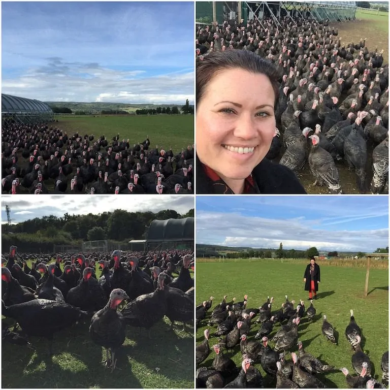 De omgeving van Cookham en Maidenhead is adembenemend mooi. Op de Copas Farm heerst rust en is er ruimte. Oneindig veel ruimte. Dat mag ook wel als je ruim 40.000 kalkoenen hebt rondlopen. En die zijn aanwezig kan ik je verklappen. Vooral als je ze roept met de speciale ‘kalkoenenroep’. Ze geven je massaal antwoord terug. Het valt me op hoe ontspannen de beesten rondlopen. Ze zijn niet bang of angstig, zitten letterlijk en figuurlijk goed in hun vel. Ruim 6 maanden groeien ze hier in een rustig tempo op. Dat is lang en zorgt voor een optimale groei op de meest diervriendelijke wijze. Zo ontstaat er ook een natuurlijke vetlaag waar je tijdens de bereiding zoveel profijt van hebt. De grootste zorg die de meeste mensen namelijk hebben is dat de kalkoen droog uit de oven komt. Daar hoef je bij deze niet angstig voor te zijn. Deze kalkoen kan echt niet mislukken.