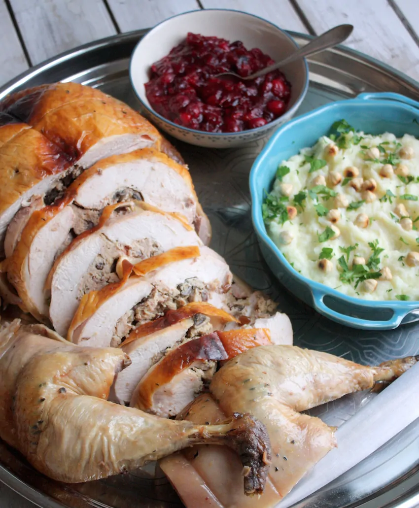 Van zo’n hele gevulde kalkoen kunnen met gemak 10-12 personen eten. Zeker als je er ook nog een aantal bijgerechten naast serveert. Kijk maar eens in mijn blog van vorig jaar waarin ik diverse suggesties geef. Nou wil je vast ook zo’n kalkoen bestellen, dat kan nog t/m aanstaande woensdag 16 december. Voor een ontbeende en gevulde kalkoen betaal je € 109,99 en de ongevulde kalkoen kost € 95,-. Nou kan ik niet in andermans portemonnee kijken, maar als we het hebben over prijs-kwaliteitverhouding dan is deze prijs volledig gerechtvaardigd. Bestellen doe je rechtstreeks bij Boers&Boers op de site.