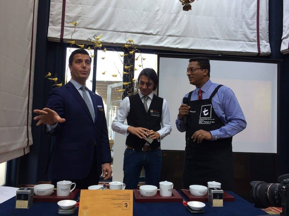 Mr. Fernando zat bij ons aan tafel en ik was onder de indruk van zijn voorkomen. Een aardige en toegankelijke man die zichtbaar genoot van de eerste openbaring van zijn twee zeldzame theesoorten. Met zijn kleinzoon aan zijn rechterzijde en zijn zoon die het verhaal vertelde aan de genodigden.