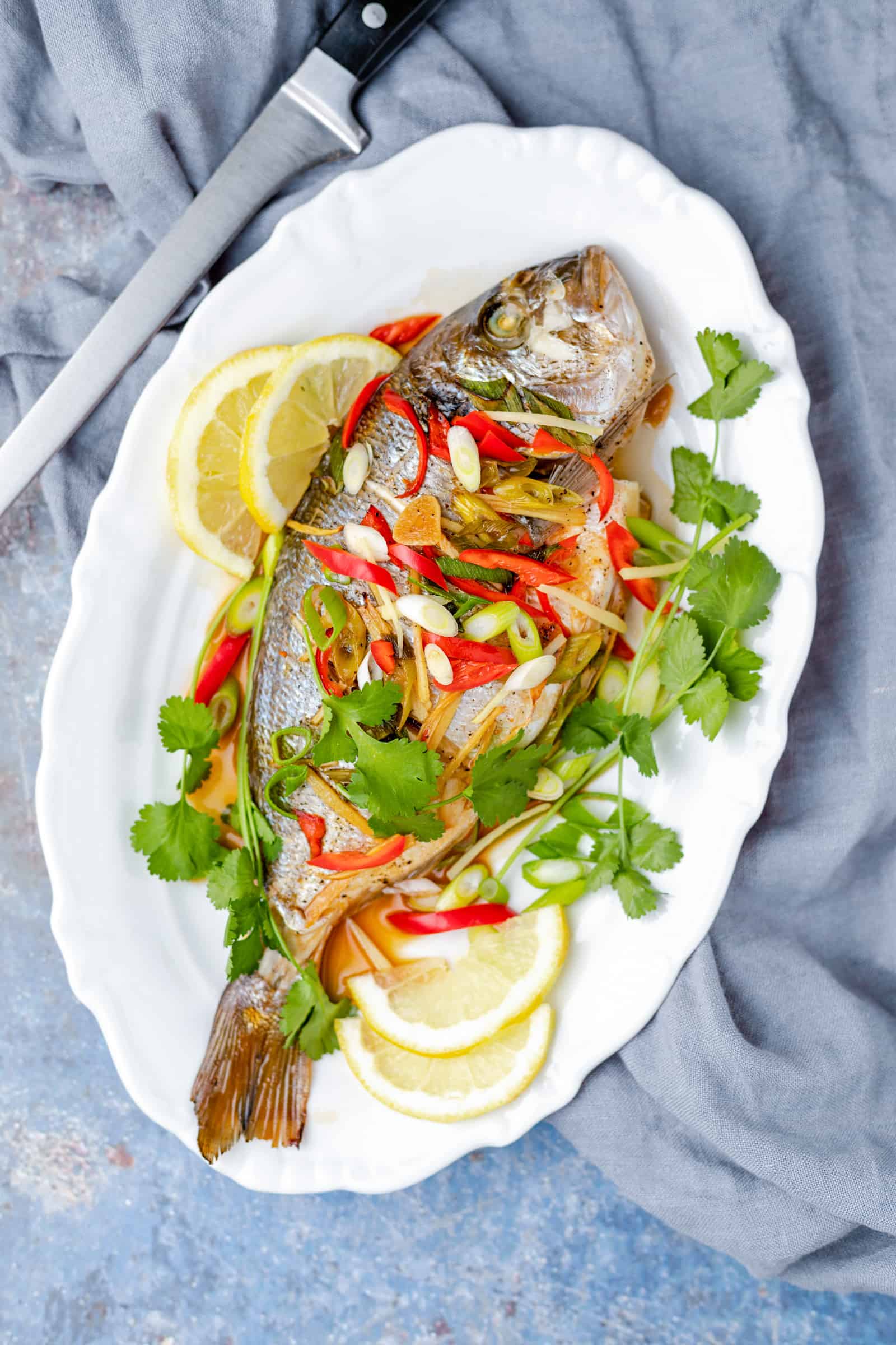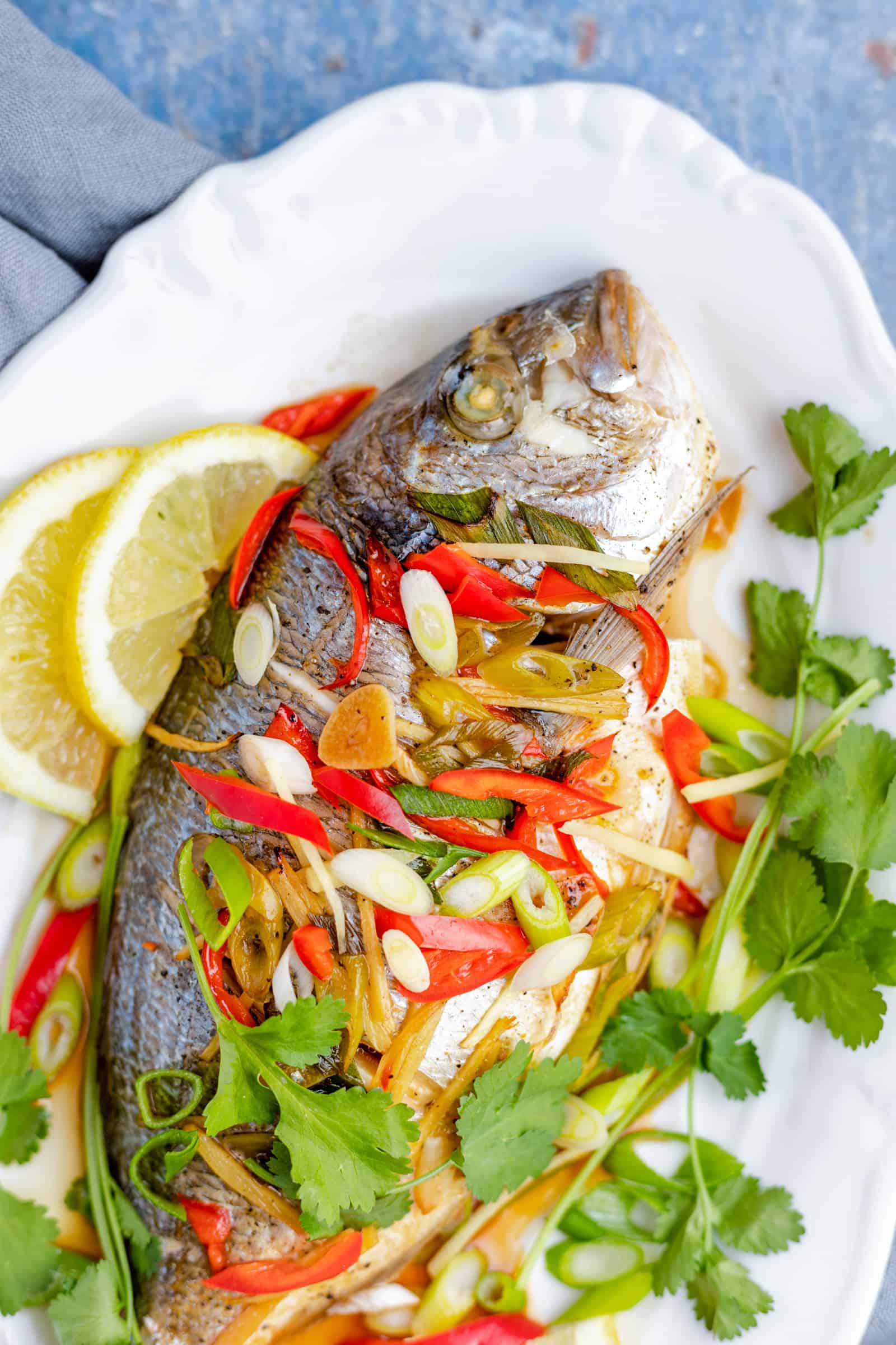 Mijn schoonzus kan waanzinnig goed koken. Naast haar Surinaamse kookrepertoire tovert ze geregeld andere verrassingen uit haar hoge hoed. Zoals Chinese gestoomde vis met gember, knoflook en peper. Ik heb een half idee hoe ze die maakt, maar ik moet het geheim nog een keer ontfutselen. Maar met haar gerecht in mijn achterhoofd ben ik wel de keuken ingedoken om een makkelijke versie voor doordeweeks te maken. Zie hier mijn dorade uit de oven met gember, knoflook en peper en dat is me toch een succes geworden!