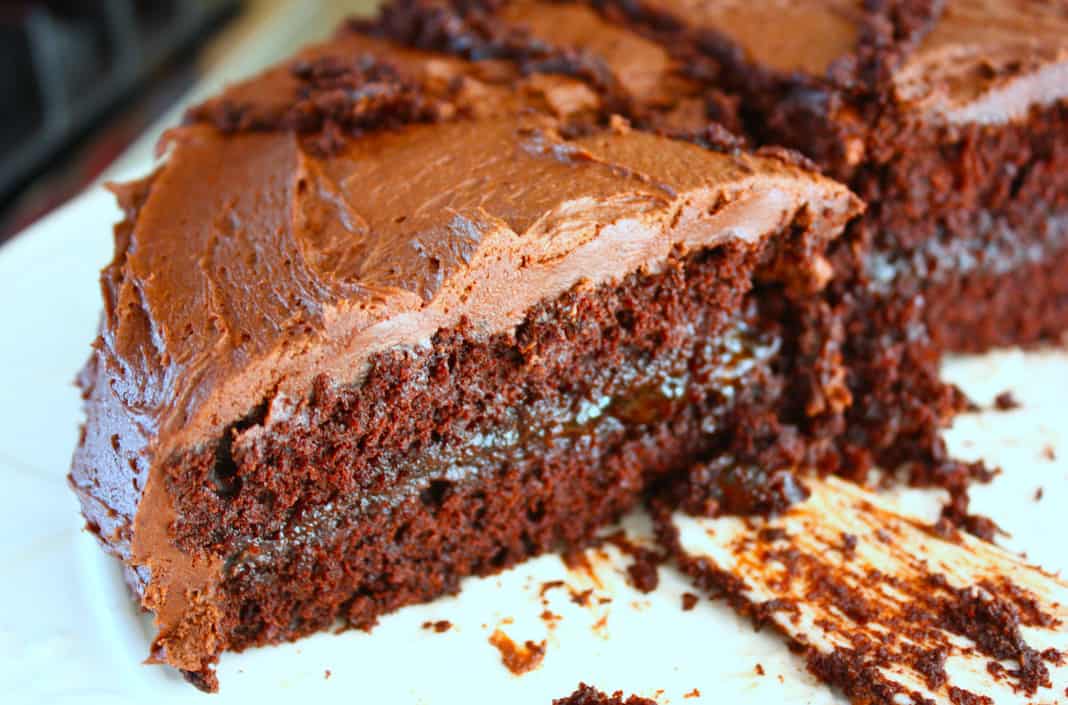 Op de dag van de verjaardag van oma stond de taart klaar op het aanrecht. De kleuter was er al een keer of 80 langs gelopen. Om ernaar te kijken en vervolgens met wanhoop in zijn stem “mmmm, lekker hè die chocoladetaart, wanneer kwam oma nou?” te zeggen. Oma kwam, we dronken koffie en ik sneed de taart in 8 punten. Mijn tip aan jullie, snijd ‘m maar in 16 punten. Da’s beter, want iedere hap is zo verschrikkelijk lekker. En machtig! Daar kun je wel een middagje op teren. Maar het is het helemaal waard, wat een killer taart.
