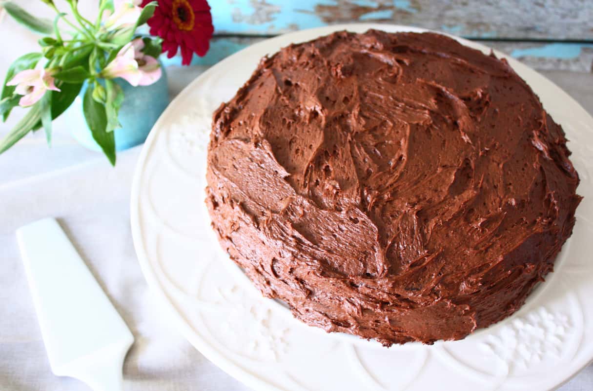 Meng de boter en de cacaopoeder in een kom en klop dit romig met een handmixer. Voeg daarna de poedersuiker, melk en vanille extract toe en ga verder met kloppen. Als de poedersuiker helemaal is opgenomen en de frosting mooi glanst, is deze klaar. Smeer je taart helemaal in met de frosting. Dit kun je het beste met een siliconen spatel doen.