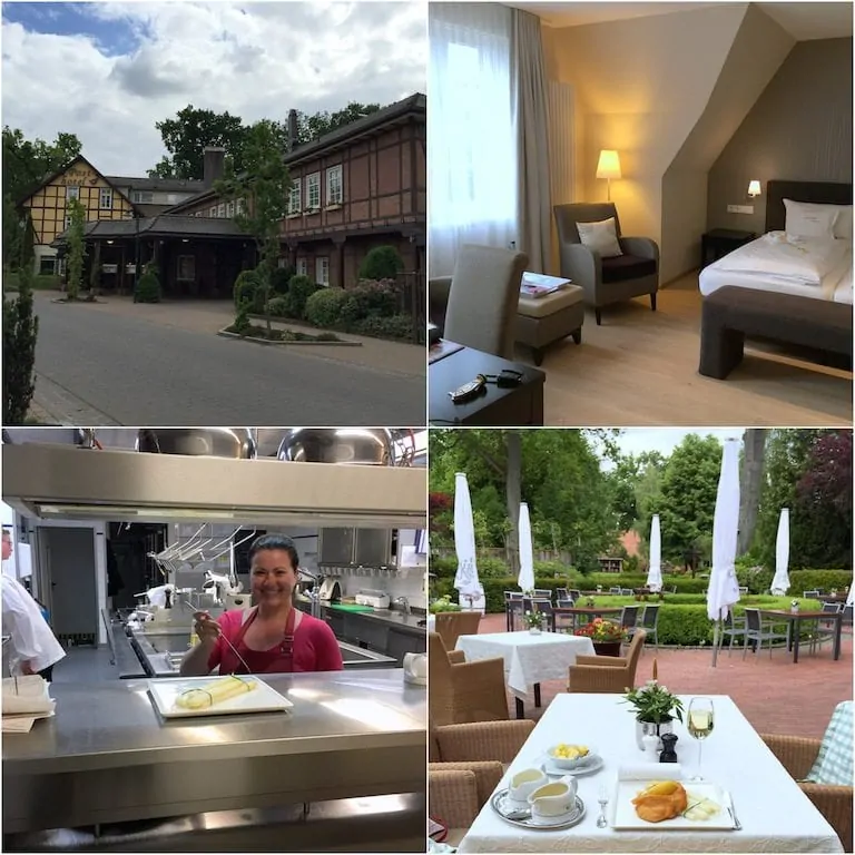Het Niemeyers Posthotel heeft namelijk een zeer goed restaurant. In Schäferstuben zwaait Alexander Niemeyer de scepter en ik heb vanmiddag de eer om gezamenlijk op traditionele wijze asperges (jawel, van Spargelhof Witthöft) te bereiden.