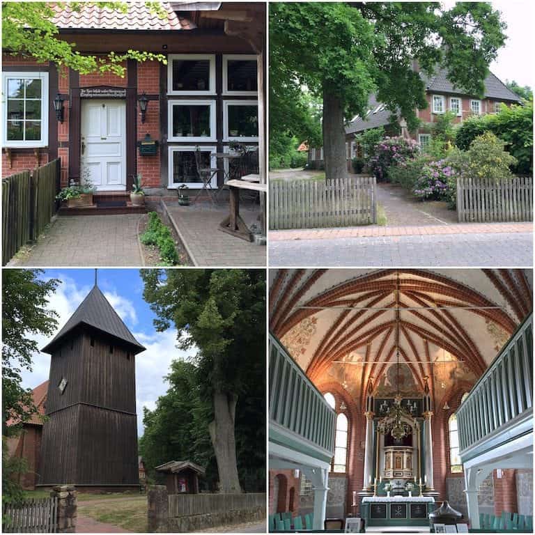 Ik eet in de tuin en kom tot rust. Het eten is zalig en ik geniet met volle teugen. Nadat ik opgeladen ben, is het tijd voor een wandeling door Müden met gids Iris. Iris kent het hier op haar duimpje en kan bijzonder gepassioneerd vertellen over ‘haar’ dorp. Maar heel eerlijk, ik was doodmoe van de dag en kon niets meer in me opnemen. Ik genoot van de wandeling, de prachtige plekken die ze me liet zien en haar enthousiasme. Maar ik heb geen idee meer wat ze heeft gezegd. Wel heb ik mooie foto’s gemaakt, dus wandel gerust even met me mee.