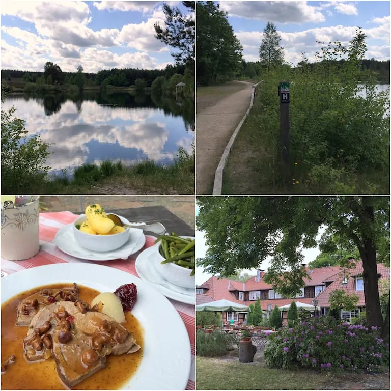 De volgende dag ga ik aan de wandel en ontdek de prachtige Heidschnuckenweg op de Lüneburger Heide. Het was een wandeling van 13km waar ik uiteindelijk 9km van heb gemaakt, omdat ik ergens per ongeluk linksaf ben gegaan waar ik rechtsaf moest. Typisch iets voor mij aangezien ik niet zo’n wandelaar ben. Maar ik ben wel heel blij dat ik deze wandeling heb gemaakt, want het gebied hier is fenomenaal mooi. Ik eindigde mijn wandeling bij ‘Gasthaus Zur alten Fuhrmannsschänke‘ waar ik het traditionele gerecht ‘Heidschnucke’ heb gegeten. Dit is een schapensoort dat op de Lüneburger Heide leeft en deze wordt zacht gegaard met eigen jus, aardappelen en boontjes. Simpel en zalig, vooral als je het op hun heerlijke terras in het zonnetje eet. Gelukkig bracht een aardige taxichauffeur me na de maaltijd weer terug naar mijn auto, want nog een keer 9km was wellicht iets te enthousiast geweest 😉